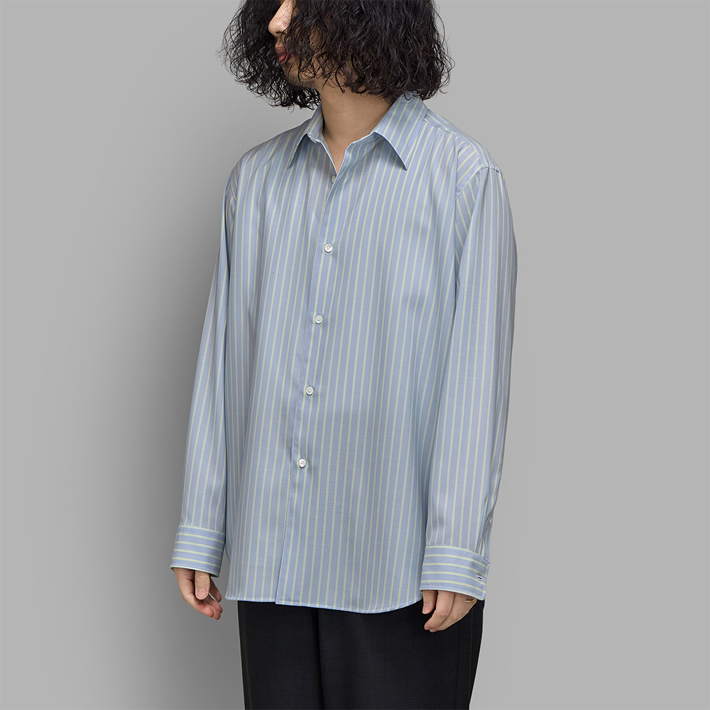 AURALEE / Super Fine Wool Stripe Shirt (Sax Blue Lime)