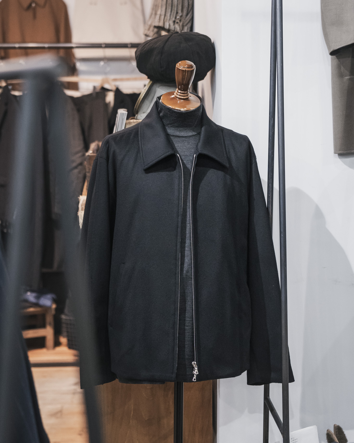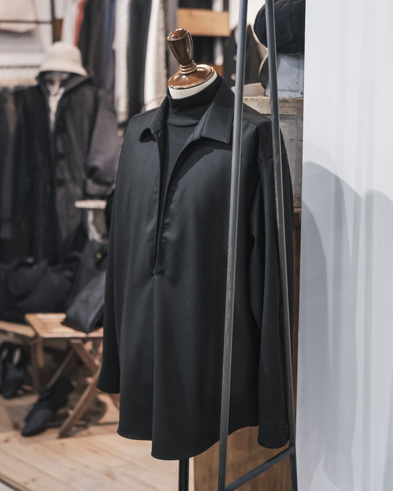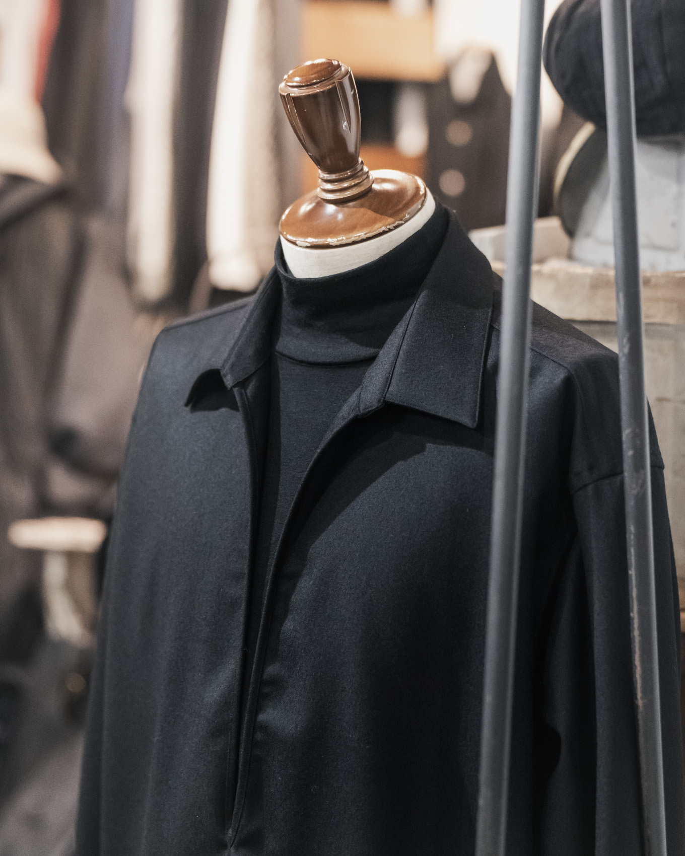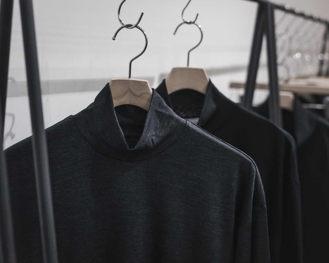今回入荷いたしました継続モデルのウールジャージーのハイネックは、毎シーズン、リピート購入されるお客様も多いことから、今回、特別に当店別注生産という形で作製していただきました。