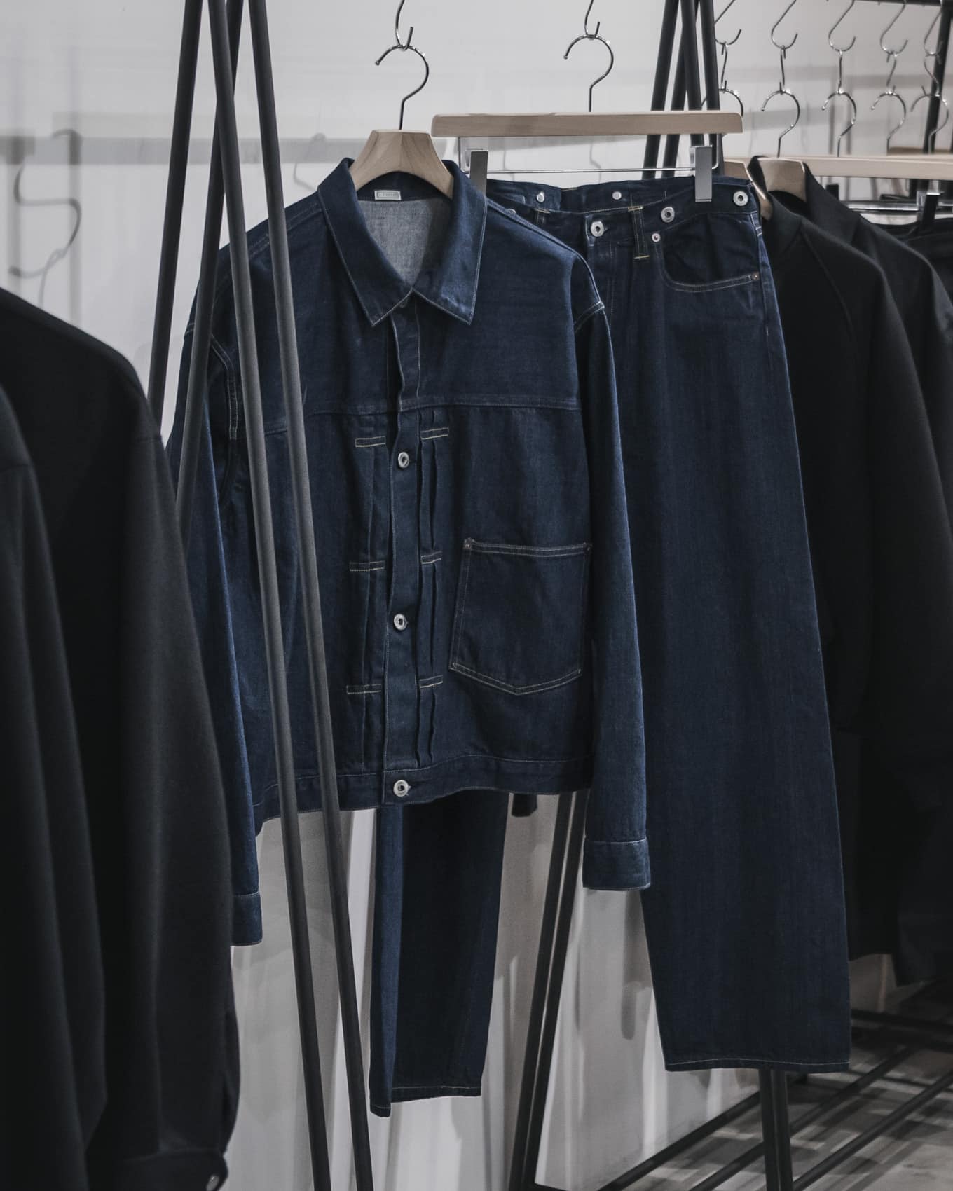 < No.213 Denim Jacket & No.22 Washed Wide Denim Pants >