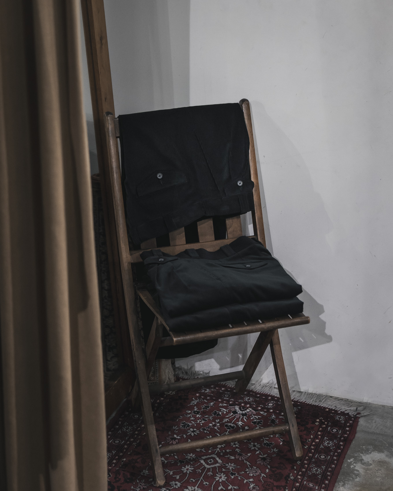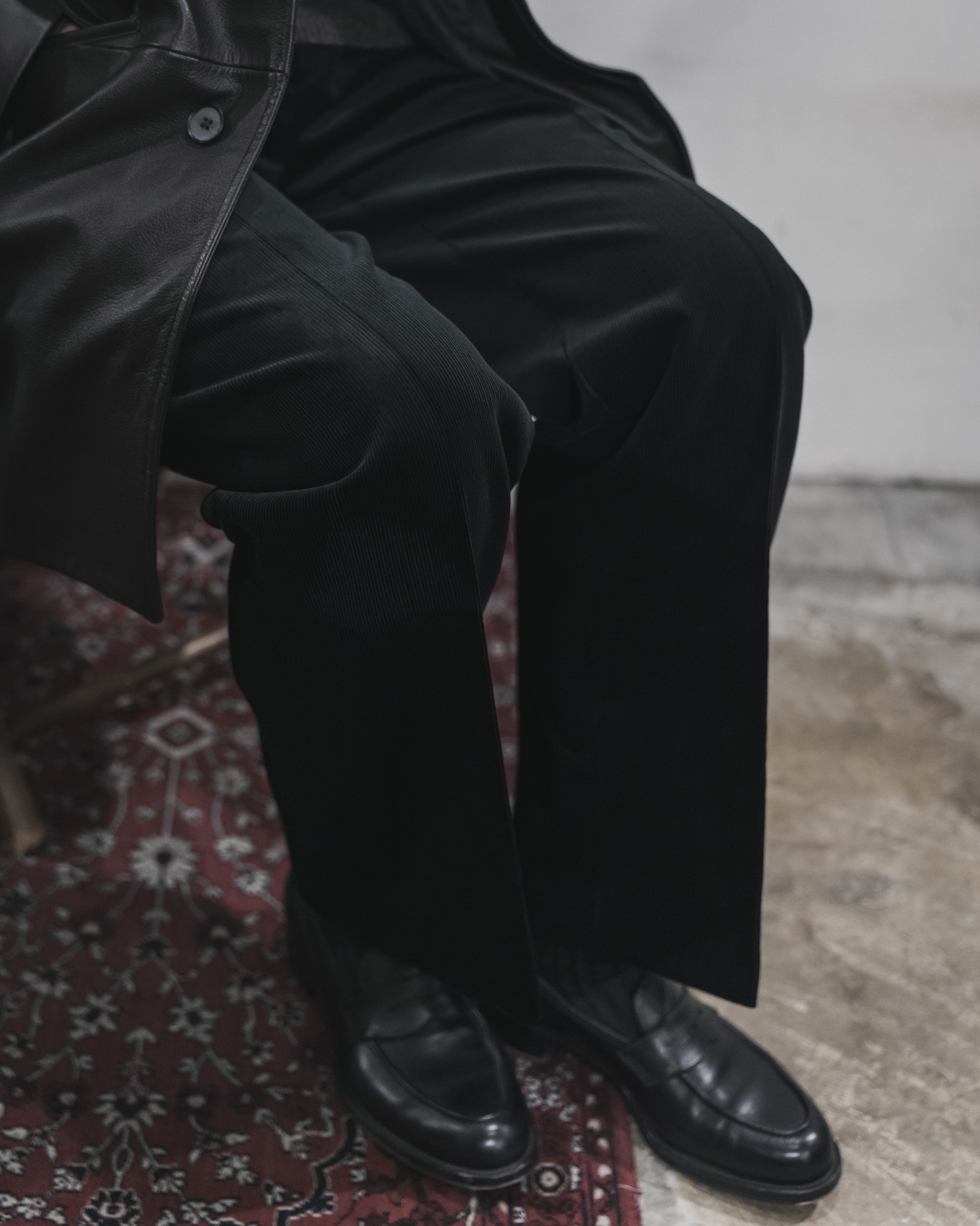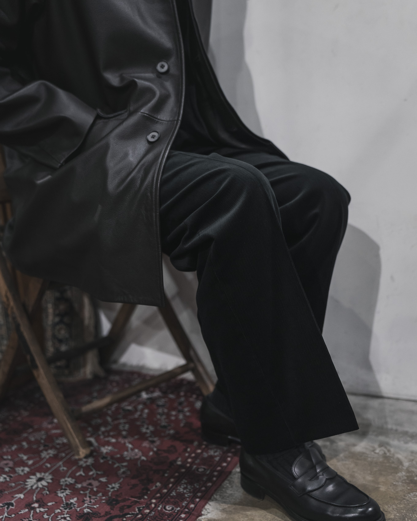 バランスの取れた同モデルのシルエットに、秋冬の衣服との馴染みが良いコーデュロイ素材を組み合わせることで、シーズン通して、様々なアイテムとの着こなしをお楽しみいただける万能な1本に仕上がっています。最初のクリースの入ったスラックスらしいきれいな面持ちも素敵ですが、洗いと着用を繰り返してクタッとした表情へ変化させるようにラフに取り扱うのもおすすめです。