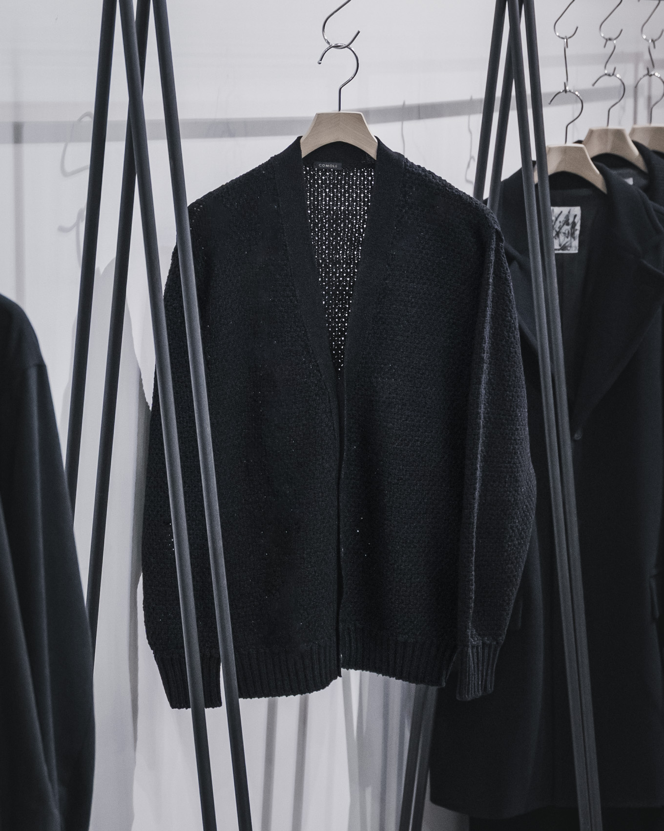 ボリュームのある編み地が特徴のニットカーディガンです。Tシャツやニットの上から軽く羽織ることを想定して作られています。着用を重ねることで徐々にフェード感が増し、より味わいのある表情へと変化していきます。継続モデルですが、今シーズンは編み地をやや緩めに調整しています。