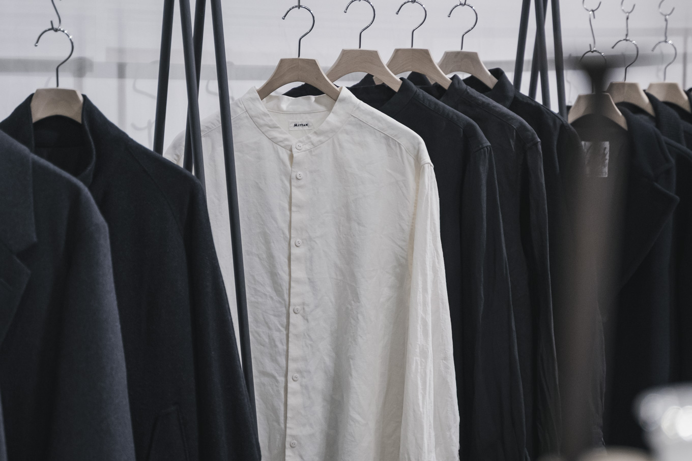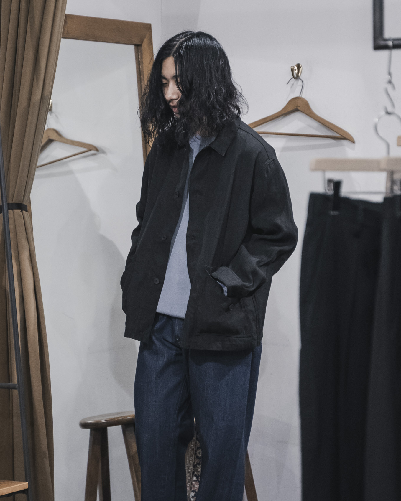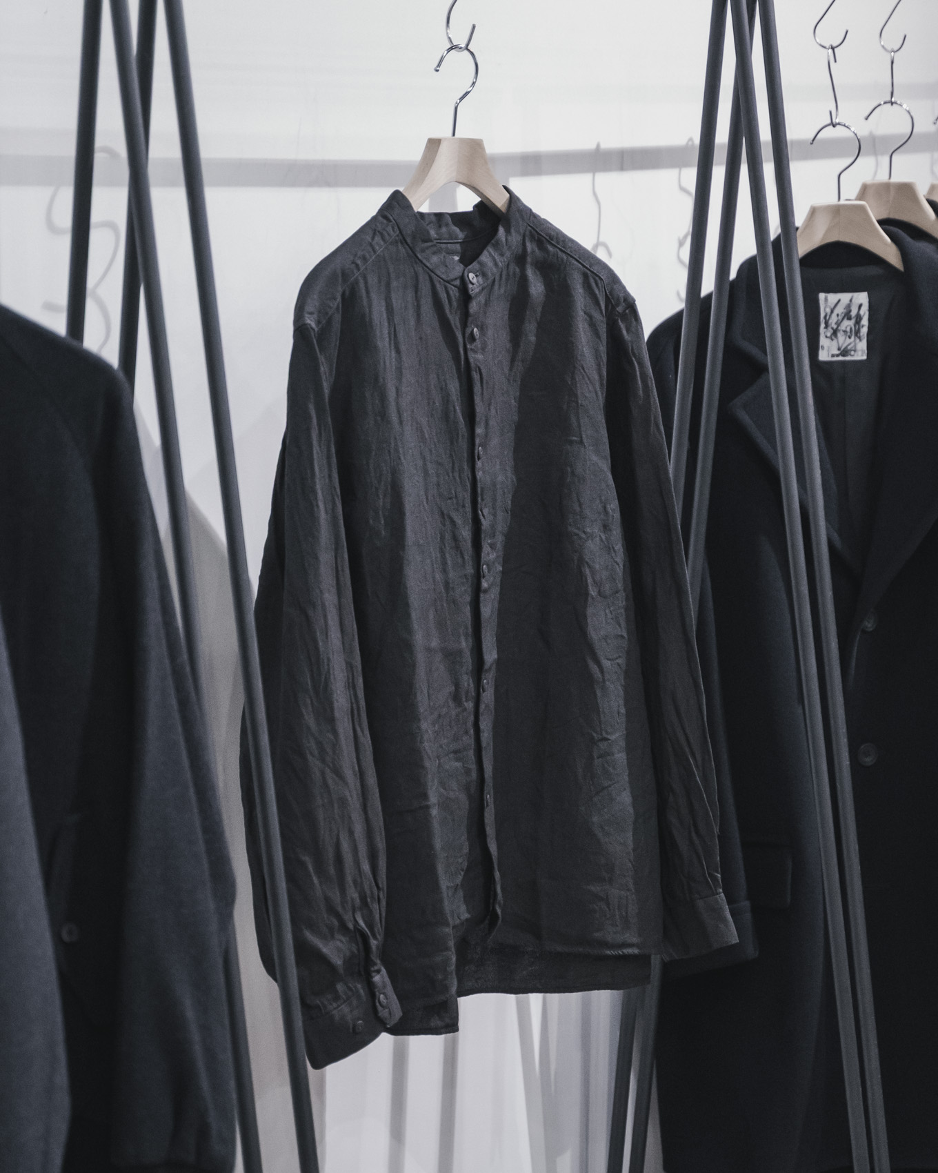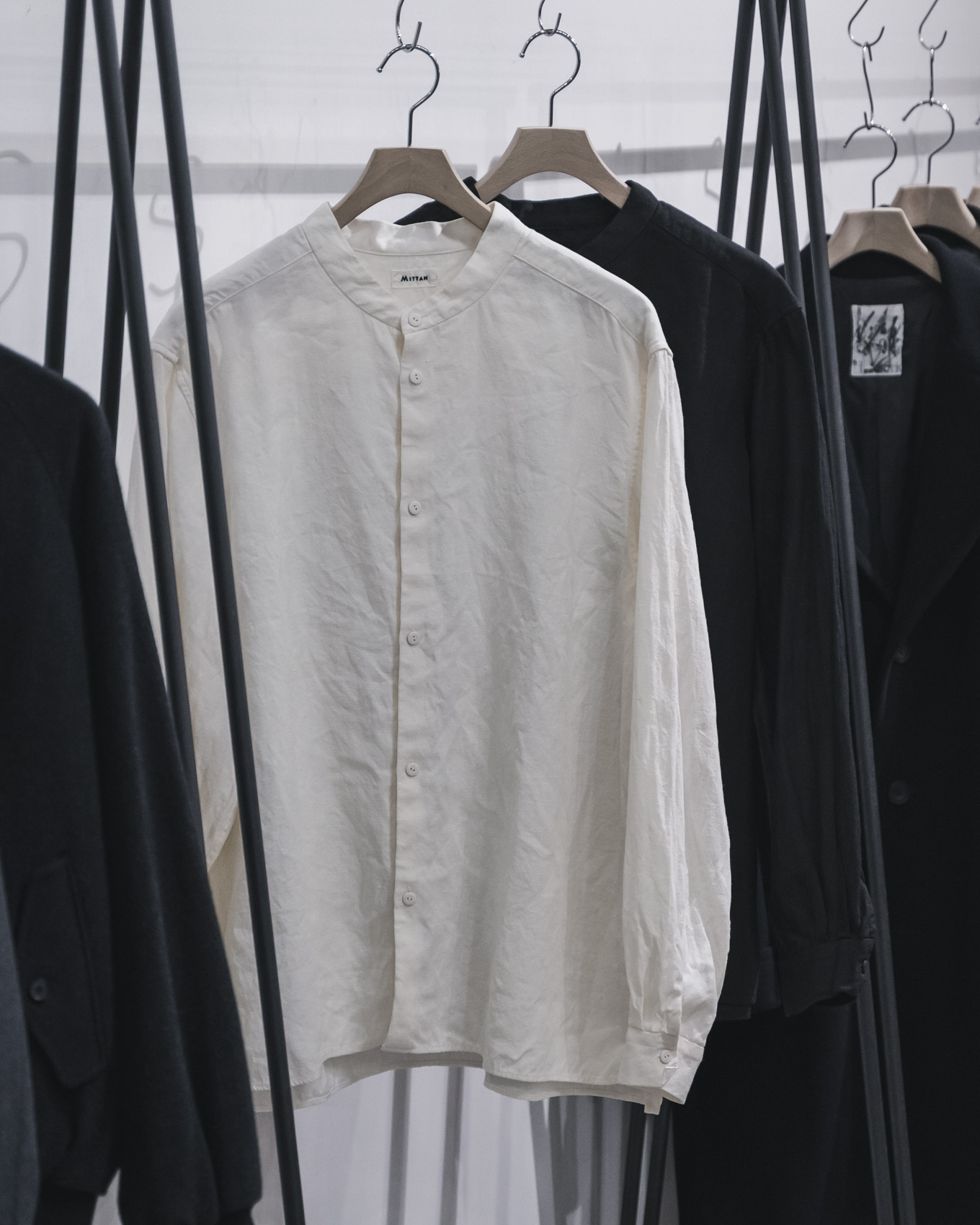 今回は、新しく開発されたオリジナル素材である、和紙糸と大麻糸を用いた生地を使用した、新モデルのジャケットと、オーバーサイズのバンドカラーシャツをご紹介します。