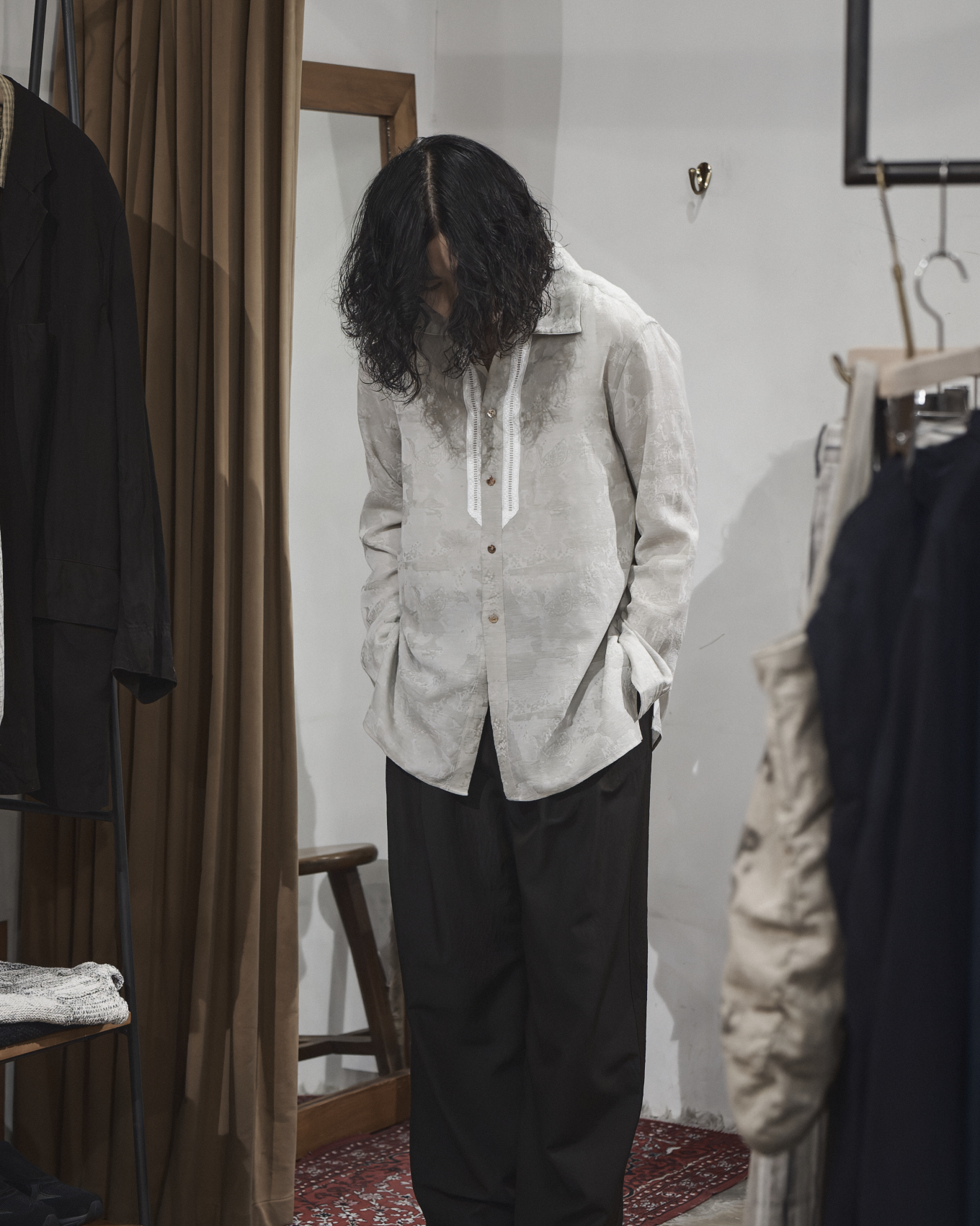 Aquellosの真骨頂とも言えるシャツを、バリエーション豊富にご用意いたしました。生地もオーセンティックなリネンポプリンをはじめ、フラワージャカードやシースルーボイルドコットンなど多岐にわたります。また、同ブランドでは普段あまり展開のない黒の色が加わっている点も特徴です。