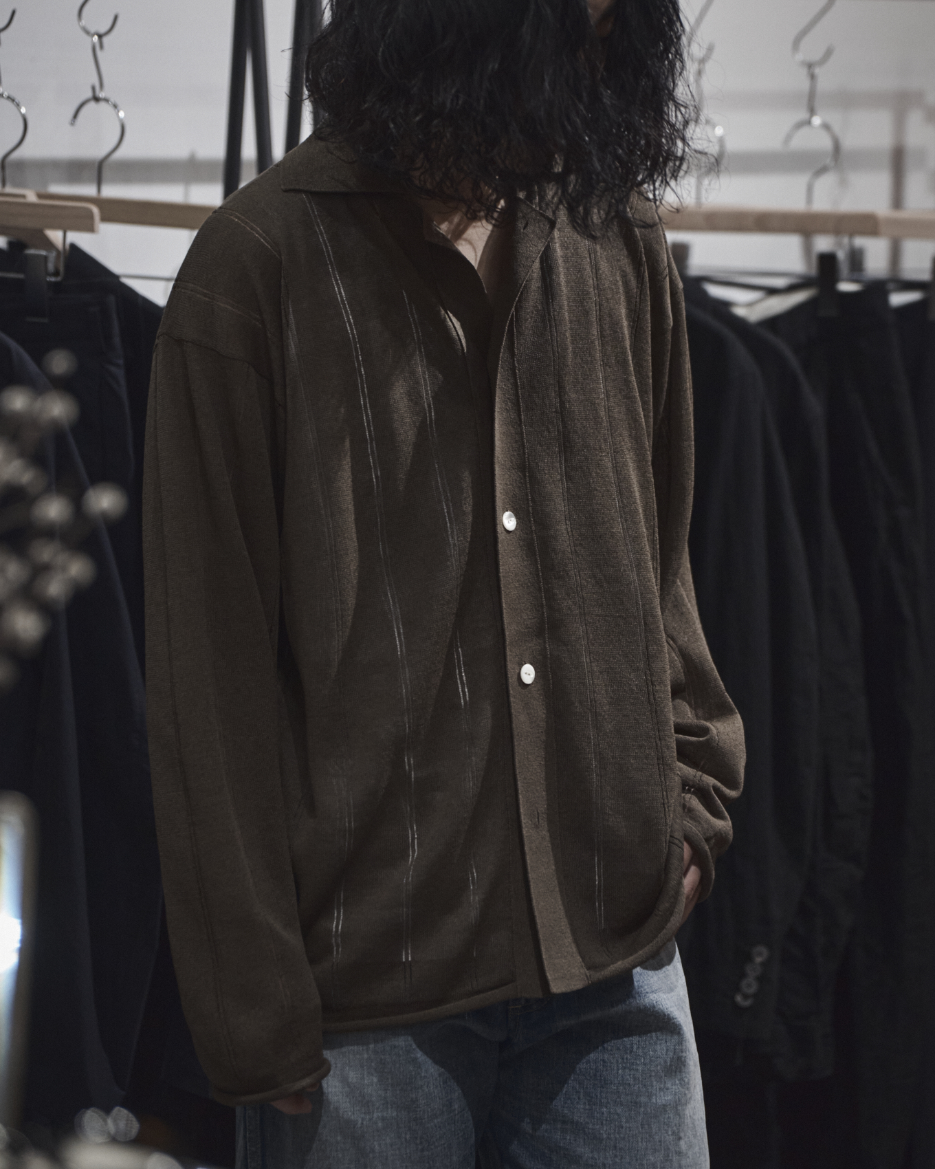 強撚シルクならではのドライなタッチと、ニットならではの柔らかな着心地を両立したシャツカーディガンです。