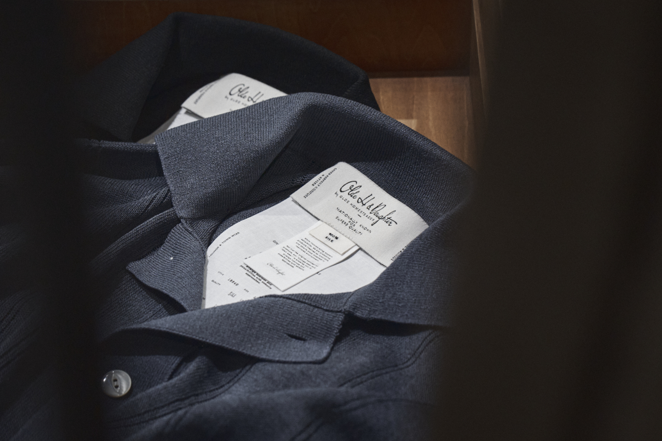透かし編みによるストライプ柄は、クラシックなリゾートシャツを思わせる意匠を感じさせ、袖口や裾はロール仕様にすることで、ほどよい抜け感と現代的な雰囲気を演出しています。随所に、同ブランドらしい繊細なバランスへのこだわりが感じられる仕上がりです。