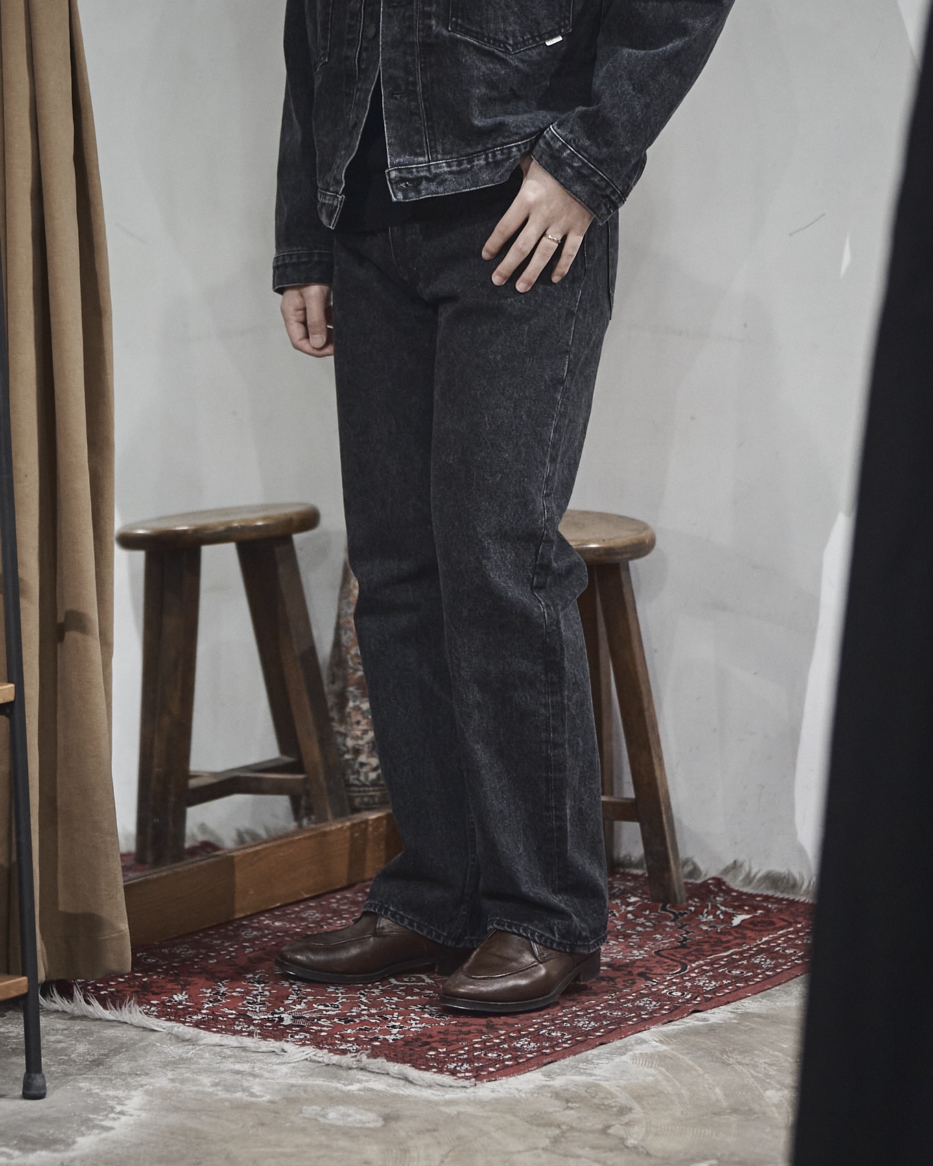 脇がセルヴィッチ仕様のクラシックなシルエットをブランド独自の解釈で構築した、ワイドストレート型のLot.0-09です。腰廻りにシワ、もたつきが出づらく、フラットに見える独自のシルエットを開発し、取り入れています。ワイド型として作製されているモデルですが、シルエットがとても綺麗で、さほど太めのシルエットも強調されていません。太すぎず細すぎない、丁度良い太さが特徴で、スタンダードなデニムパンツとしてご愛用いただけます。