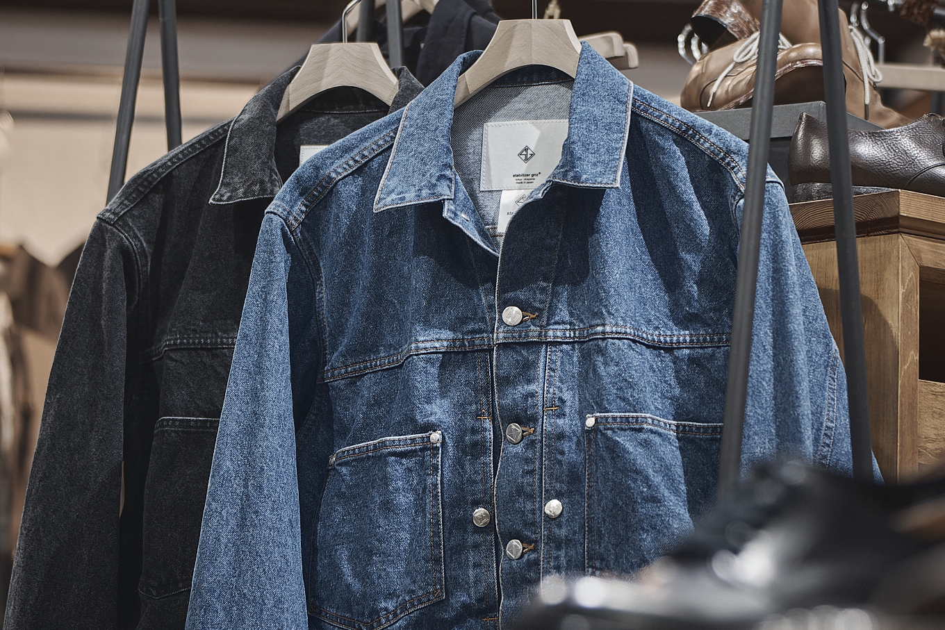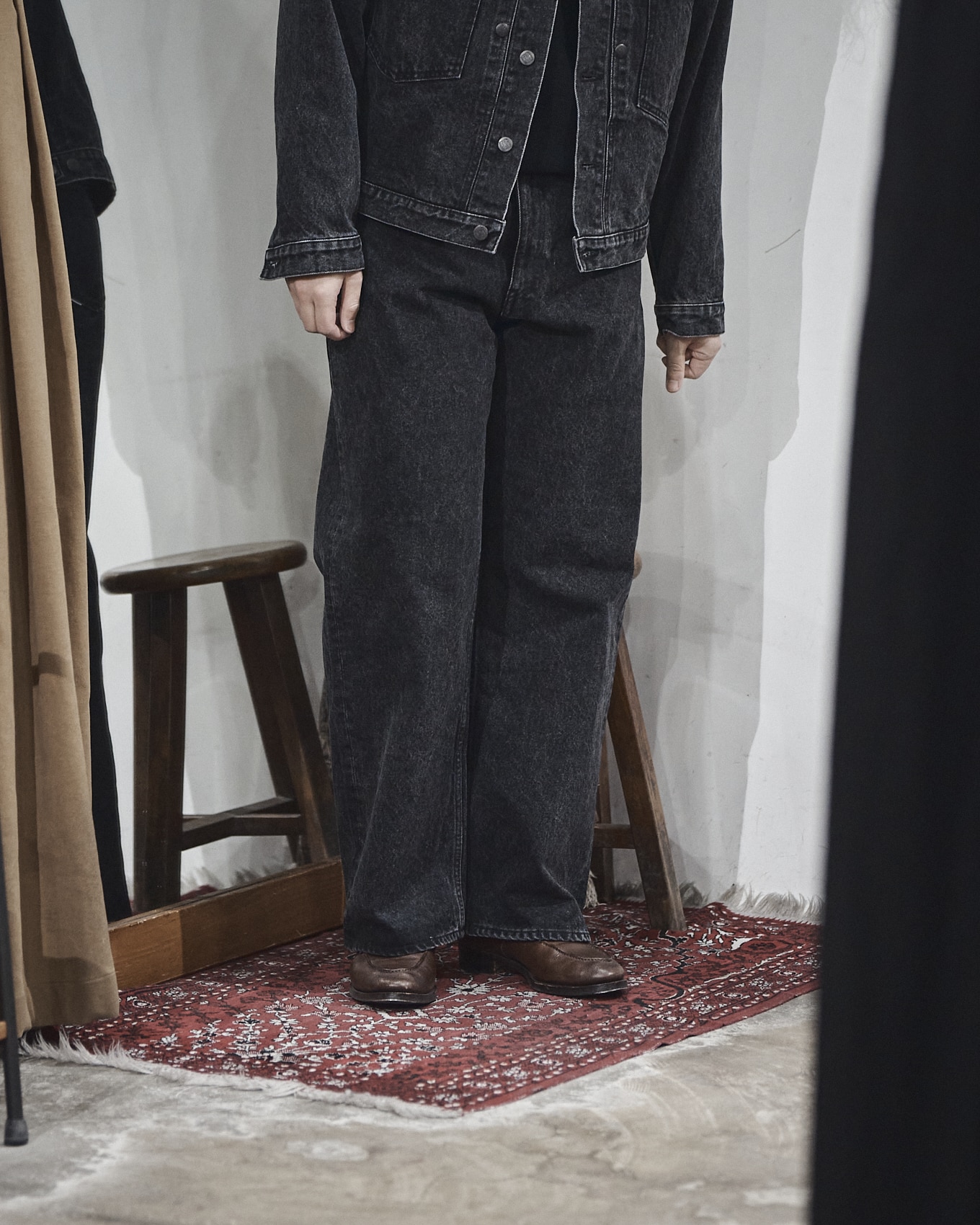 アイテムはブランド定番のデニムジャケットと5ポケットパンツで、今期は一度限りの展開として、別注セルビッチデニムのリジッドではなく、新たなデニム生地と加工で展開されています。
