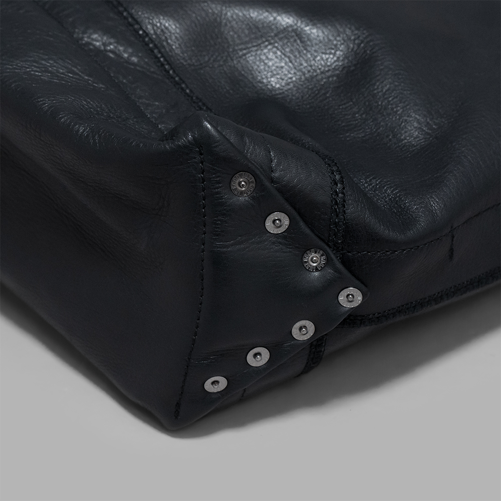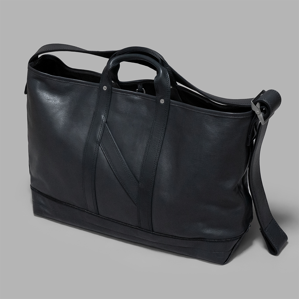 マチの折り込みリベット止めなど当時の面影を残しながらも、「N型」のハンドルなどショルダーバックとして使いやすい形状にアップデートしています。