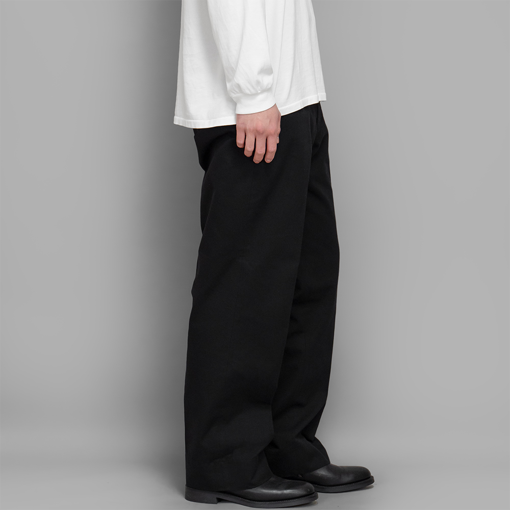 型は25SSの継続で、24SSまでの同モデルからシルエットを少しだけ太くして、適度なゆとりのあるストレート型のパンツに仕上げています。前立てはジップフライの仕様です。