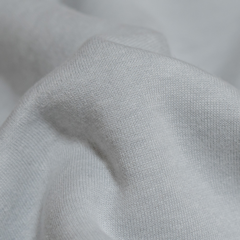 やや青みを感じるライトグレーの独特な色味を表現された、晒し杢カラーのコットン裏毛を使用しています。
