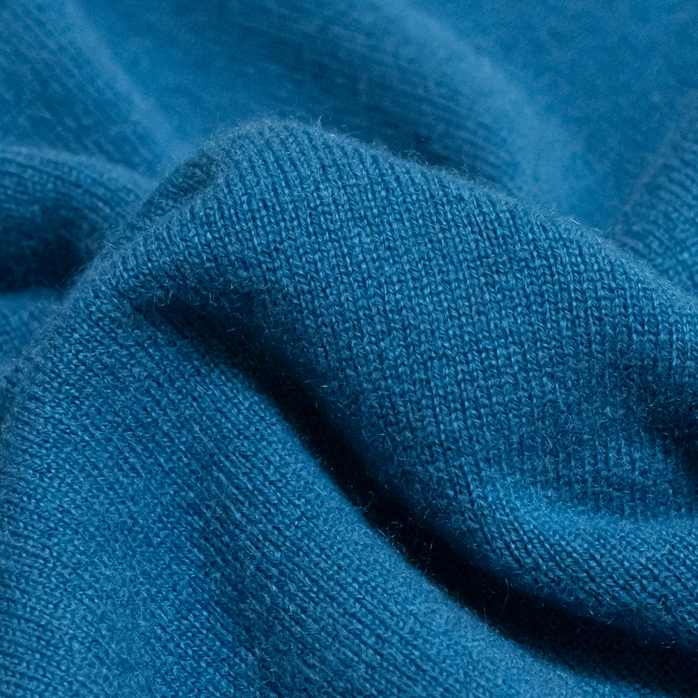 素材は、豊かな色彩且つ、しなやかな肌触りと品のある光沢を持ち合わせているカシミヤの糸を使用しています。また、発色が良く綺麗な色合いなので、ドレープや光の当たり具合によっても、色合いに深みが感じられます。