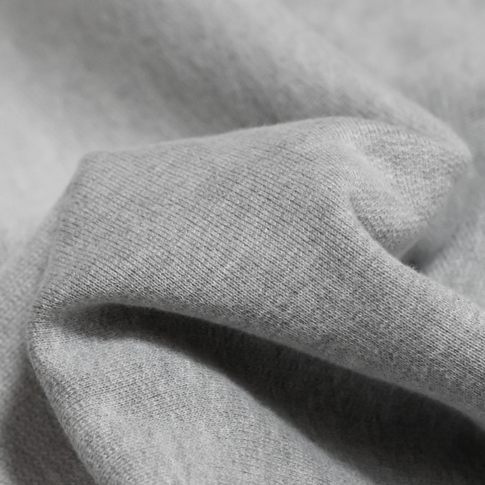 素材は、表糸には超長綿のピマコットン、裏糸には弾力のある空紡糸を採用し、高品質な原料とヴインテージ機械を最大限に活かしたスウェット素材を使用しています。独特の薄さと弾力を兼ね備えた、軽やかでありながらも豊な素材が特徴です。