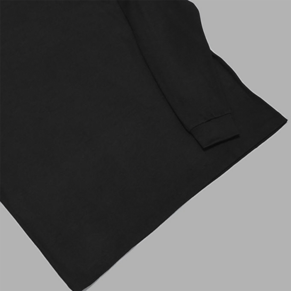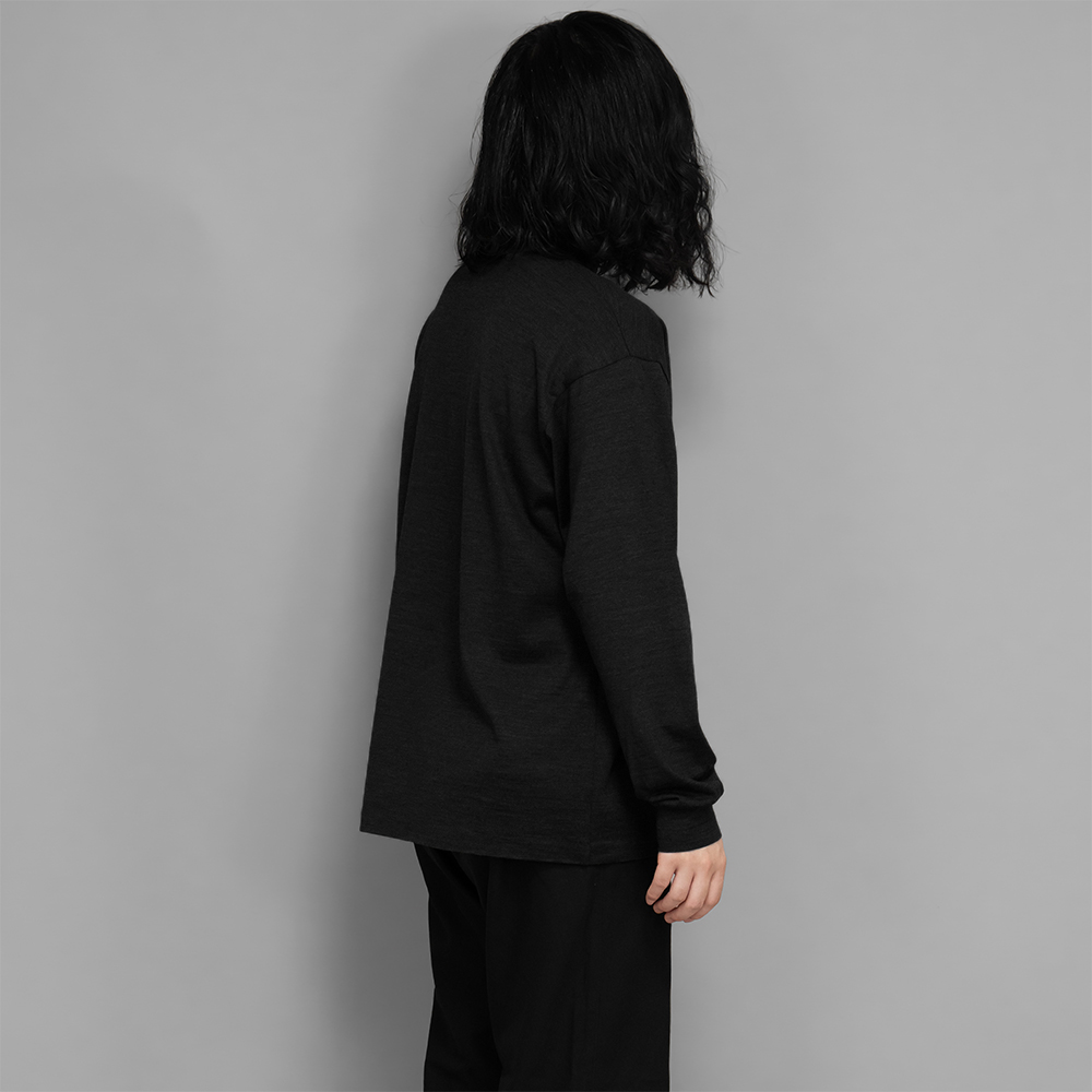 サイズ感に適度なゆとりをもたせることで、綺麗なドレープが入るように作られています。また、ネック部分はリブ素材ではなく、ボディーと同じ生地が使用されているため、極端な締め付けもなく、ストレスのない着心地の良さがあります。