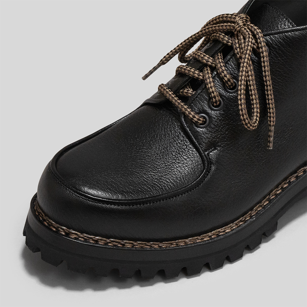 ソールはイタリアのSt.MORITZ社のラグソールを使用しています。本格的な登山靴にも採用されており、高いグリップ力やクッション性が特徴的なソールです。ラバーソールだけではなくレザーソールを間に挟み積み上げているため、雨天時の安定した履き心地と高級感あるデザイン性も併せ持っています。厚みのあるソールですが、トゥスプリングを設けて歩きやすい仕様に仕上げています。