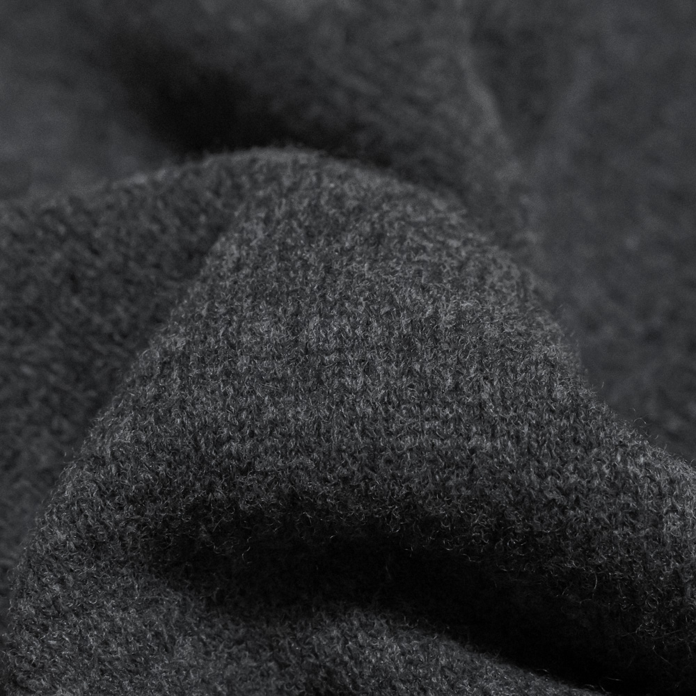 ウールの中でも14.3ミクロンという繊維の細かさを誇り、カシミヤの等級で当てはめても1等級か2等級に値する最高品質のウール原料を使用したニット素材を使用しています。冬でもしっかりと暖を取れる、中肉厚なもっちりとした質感と柔らかなタッチが特徴的です。