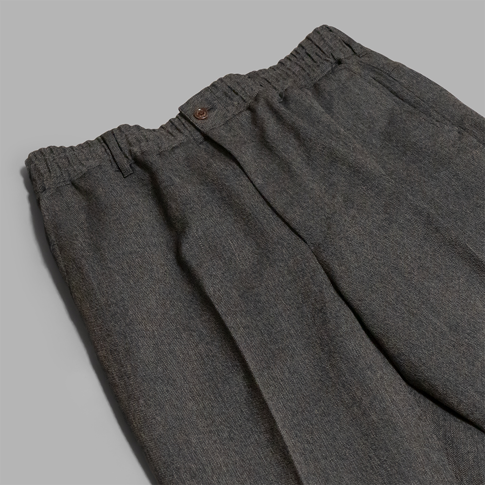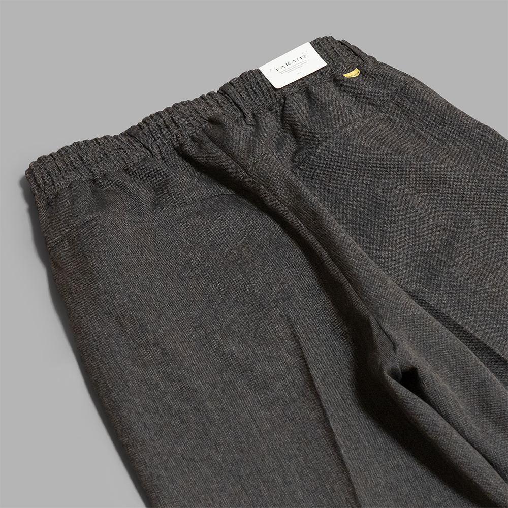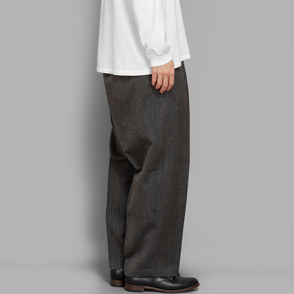 撚り杢加工を施した独特の杢色の表現からは、ミックスツイードのような雰囲気の良さが感じられ、ウールスラックスのような感覚であわせることも可能です。軽快さとファッション性を兼ね備えた1本は、スウェットやナイロンジャケットだけではなく、シャツやニットとの着こなしもお楽しみいただけます。