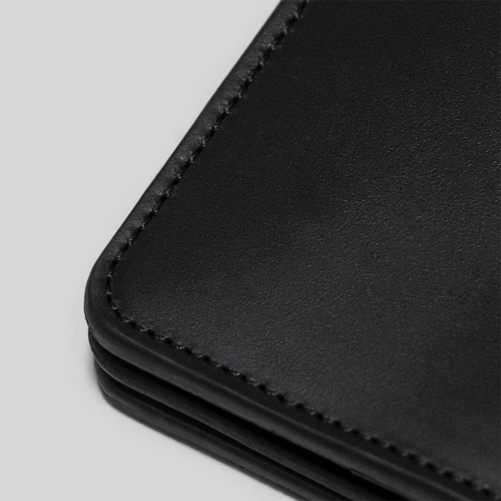 表と内装をワントーンでまとめ、且つ主張の少ないシルバーのパーツを用いることで、レザーの素材感を更に引き立たせています。表にはレザーを繋ぎ合わせるための縫製のステッチが入る程度で装飾は一切施されていません。飽きのこないシンプルなデザインと使いやすい内装も魅力です。