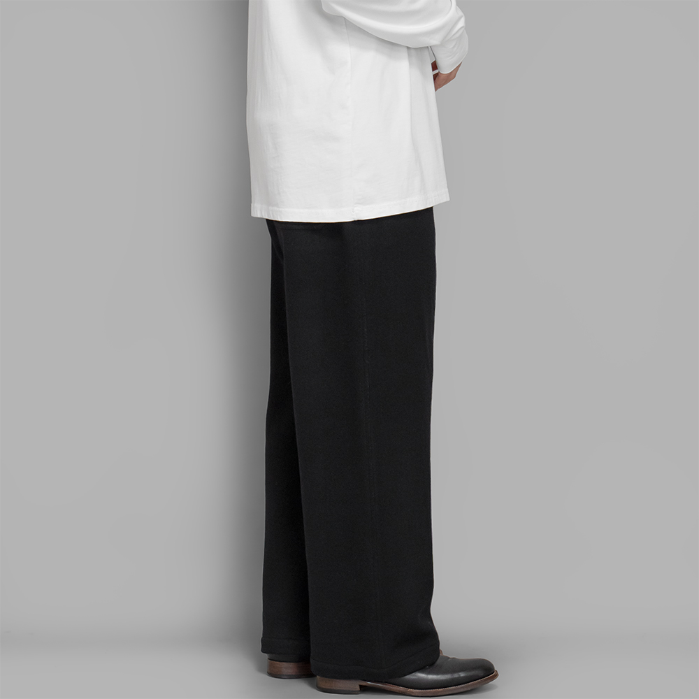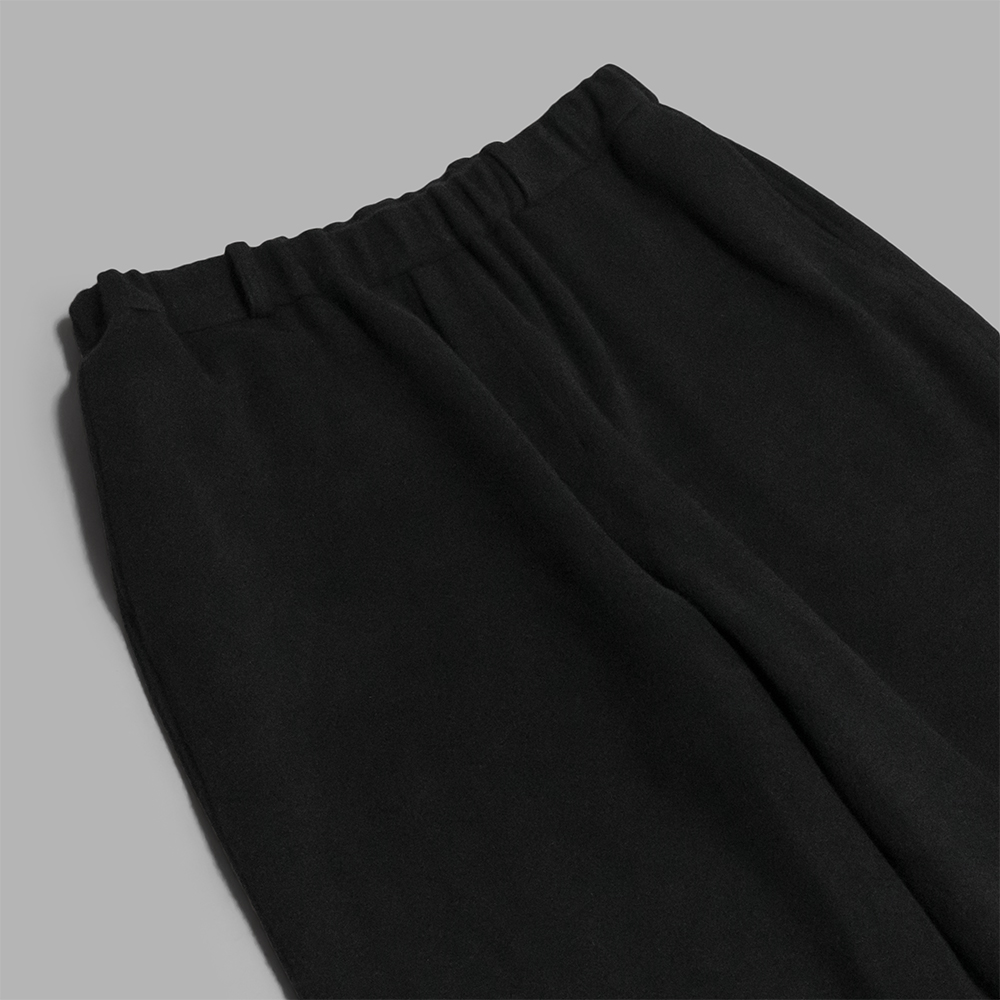 フリース素材の様な温かさと柔らかなタッチでありながら、生地にハリが残っていることで、綺麗なシルエットで着用することができます。起毛加工の施された生地のボトムスはボリュームが生まれるため、秋冬のトップスとの相性が良いのもポイントです。また、ご自宅での洗濯もできるので気軽に着用できる1着です。
