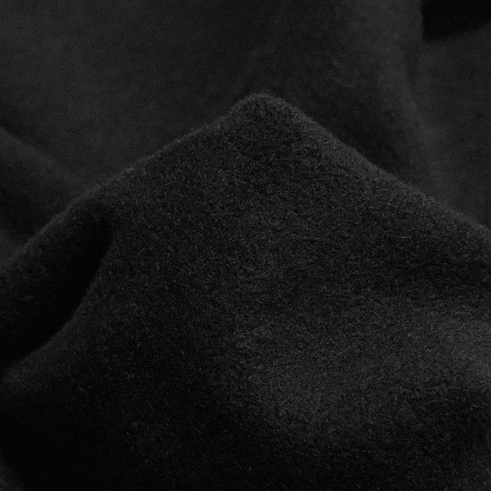 オーストラリア産のラムウール、Super100原料を使用したモッサ生地を使用しています。モッサとは紡毛織物を縮絨加工を施し、起毛整理した生地です。補強の為のナイロン等の化繊が全く入っておらず非常に柔らかな風合いで、着用による経年変化においても化繊混の生地と比べて硬い毛玉ができない特性を持ちます。