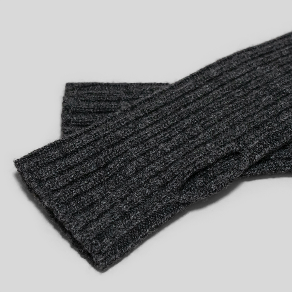 1940年代のAmerican Red Crossの手編みのハンドウォーマーがベースで、しっかり伸縮糸を効かせたフィット感のあるデザインです。密着することにより、非常に温かいのが特徴です。親指を通すサムホールが配しており、袖口から覗く感じが上質なニットのようにも見えます。実用性だけではなく、冬のコーディネートにおける手元の良いアクセントにもなるアイテムです。