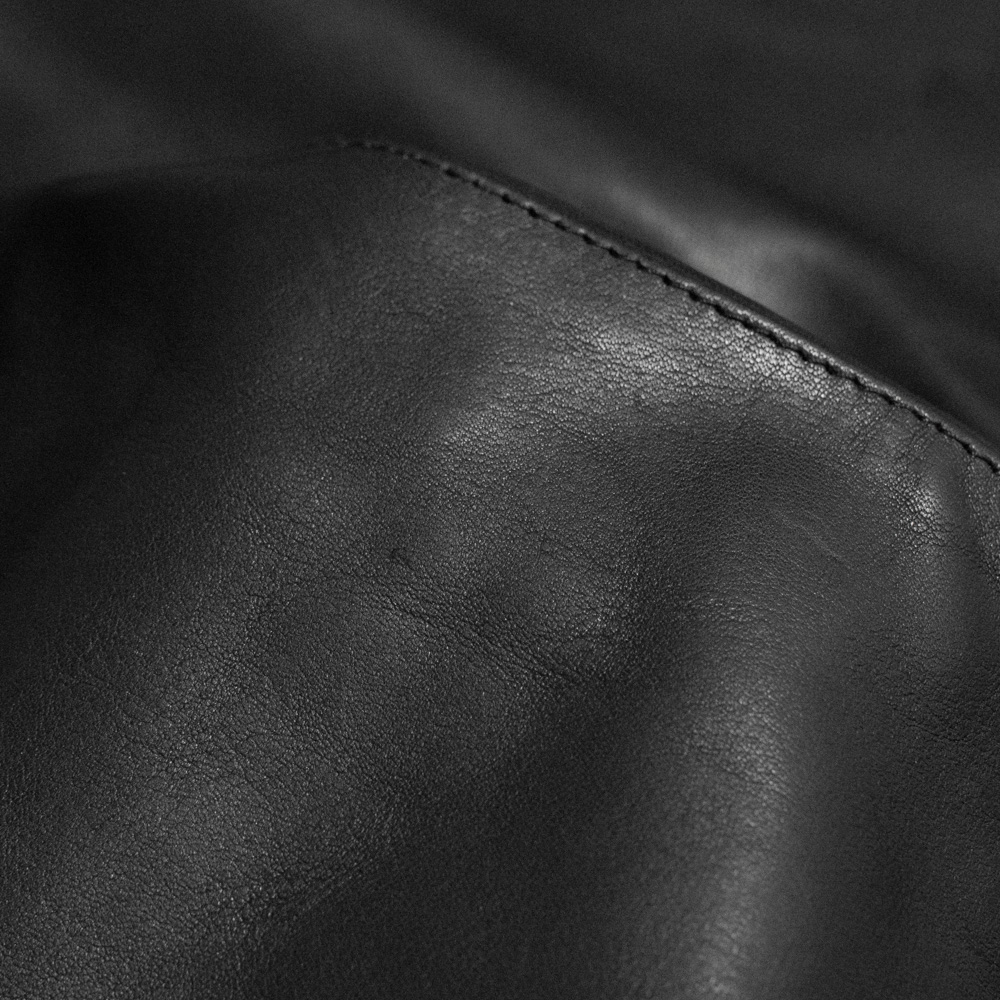 ・レザーに大量のオイルを染み込ませています。色移りの恐れがありますので、着用やお取り扱いの際はご注意ください。また、オイルが浮き出て、表面が白くなっている場合がございます。こちらは着用と共にオイルが中に浸透し、表面の白い感じは徐々に落ち着いてきます。