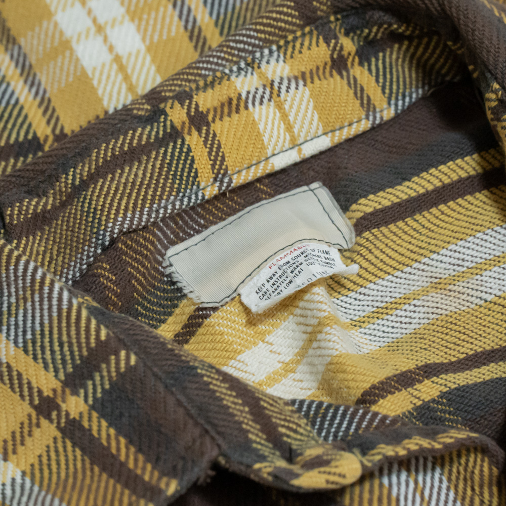 1970年代頃に生産された思われる1着です。同アイテムは、柔らかく暖かい質感とイエローとブラウンをベースとした温かみのある配色のチェックが特徴で、程良く厚みのある生地なため、秋から春先までと、3シーズンでの着用ができるのも魅力の1つです。