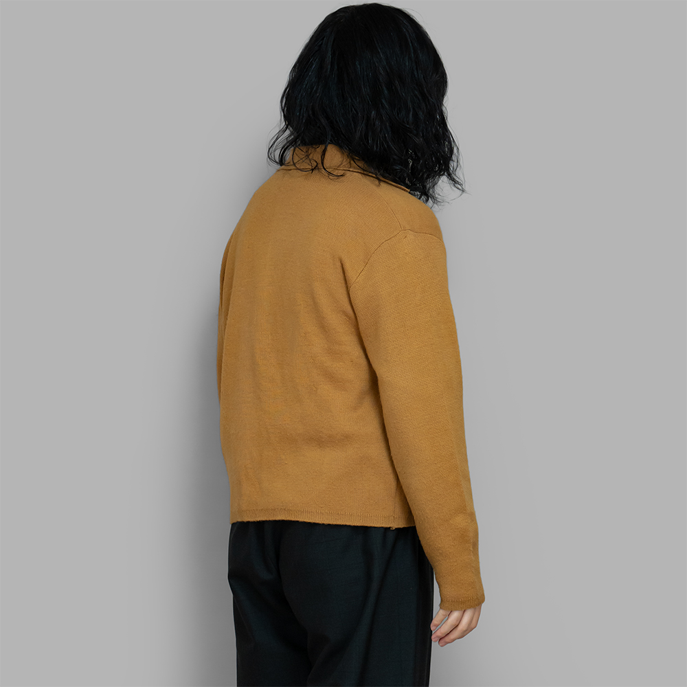 色味、デザイン性と魅力の詰まった1着です。単体での着用はもちろんのこと、スッキリした着丈のため、ジャケットの中に重ね着したりと、ニットシャツのような感覚で、レイヤードを楽しむコーディネートにも優れる逸品です。