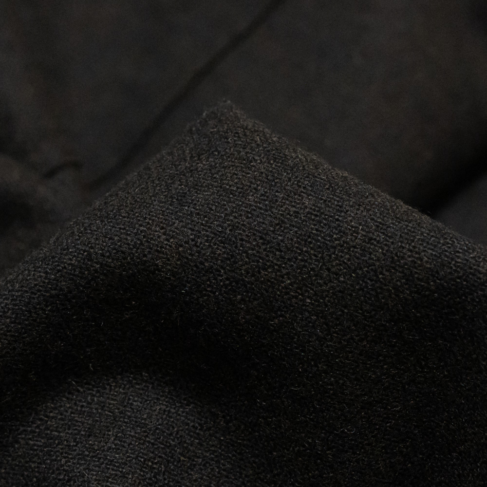 ウールにポリエステルを組み合わせた、適度なハリ感と膨らみを感じることができるホームスパン素材を使用しています。ダークブラウンをベースに黄色味のある糸が混ざっておりとても奥行きのある色に仕上がっています。
