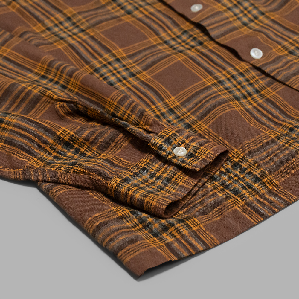 ブラウンを基調とした配色は秋冬のコーディネートにスッと馴染ませてくれます。着こなしとしては、単体着用は勿論、スッキリした着丈のため、テーラードジャケットのインナーにもあわせやすくなっています。また、シャツのインナーにハイネックのハイゲージニットやカットソーなどの着こなしもおすすめです。