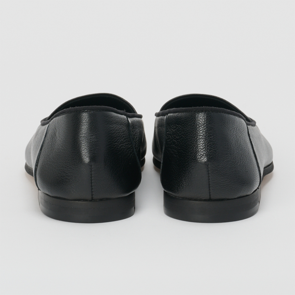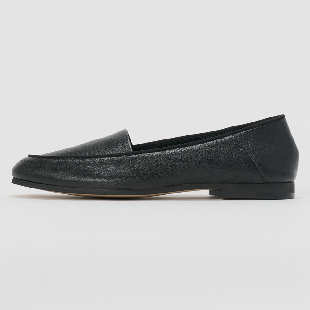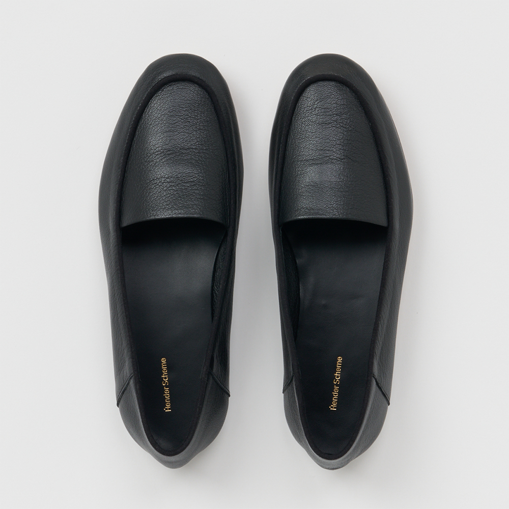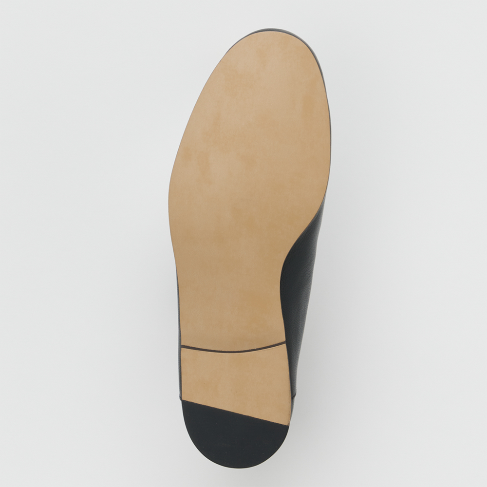 脱ぎ履きのしやすいスリッポン型を、しなやかで程よい艶のある革で製作することで、革靴らしい品の良さと、軽快な履き心地を兼ね備えたアイテムに仕上がっています。また、全体的に厚みのないスッキリとしたフォルムですので、着用した際、ボトムスの裾がストンと落ちて、ダボつきにくいため、ボトムスのシルエットを綺麗に見せてくれることも特徴の一つです。