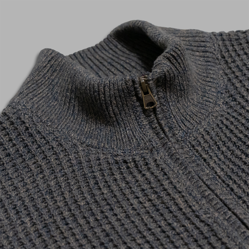 型はオーセンティックなフルジップの仕様に、ジップを閉めた際にもエレメントが見えないよう、気の利くデザインなのも特徴です。また、袖付けはセットインスリーブの仕様で、カーディガン感覚でサラッと羽織っていただけます。