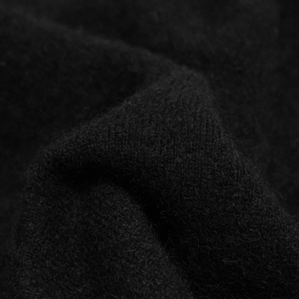 素材は、厳選された高品質のカシミヤ原料を丁寧に紡いで製作された高級カシミヤ糸を使用しております。緩めに編んで加工を施すことにより、原料の良さが際立ち、程よく厚みがありながらも、やわらかい着心地とふくらみを実現しています。