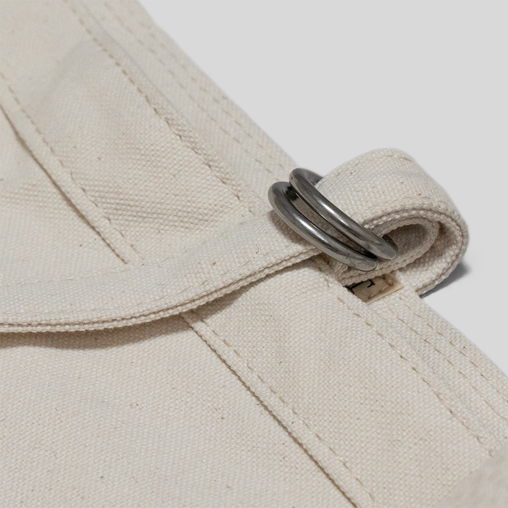 ウォッシュ加工を施したヴィンテージ調のキャンバス地と鉄製のパーツを使用。古いタイプのニュースボーイバッグに見られる、リベット留めによるディティールや、縫製などの仕様も忠実に再現しています。