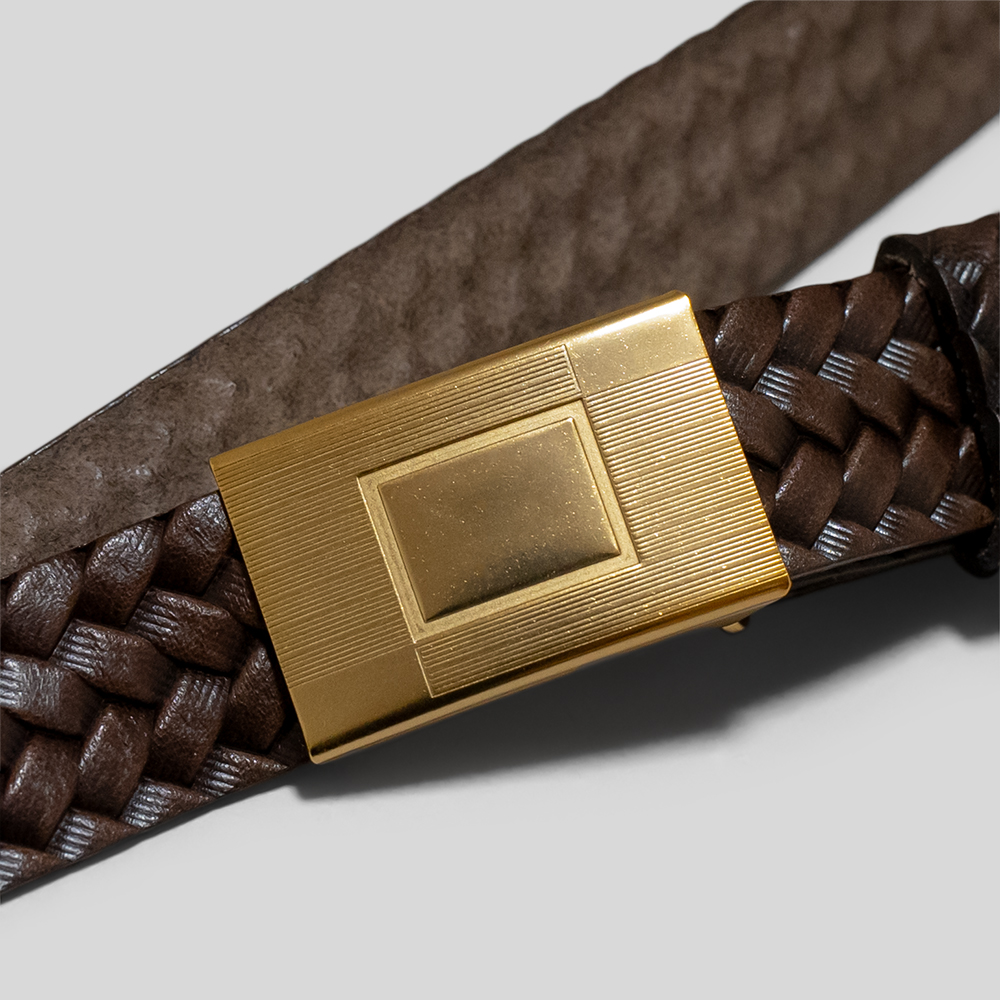 アールデコ調で雰囲気よく仕上げた真鍮バックルは、デニムやスラックスなど、クラシックなボトムスと相性がよく、より一層ムードのある着こなしを楽しむことができます。