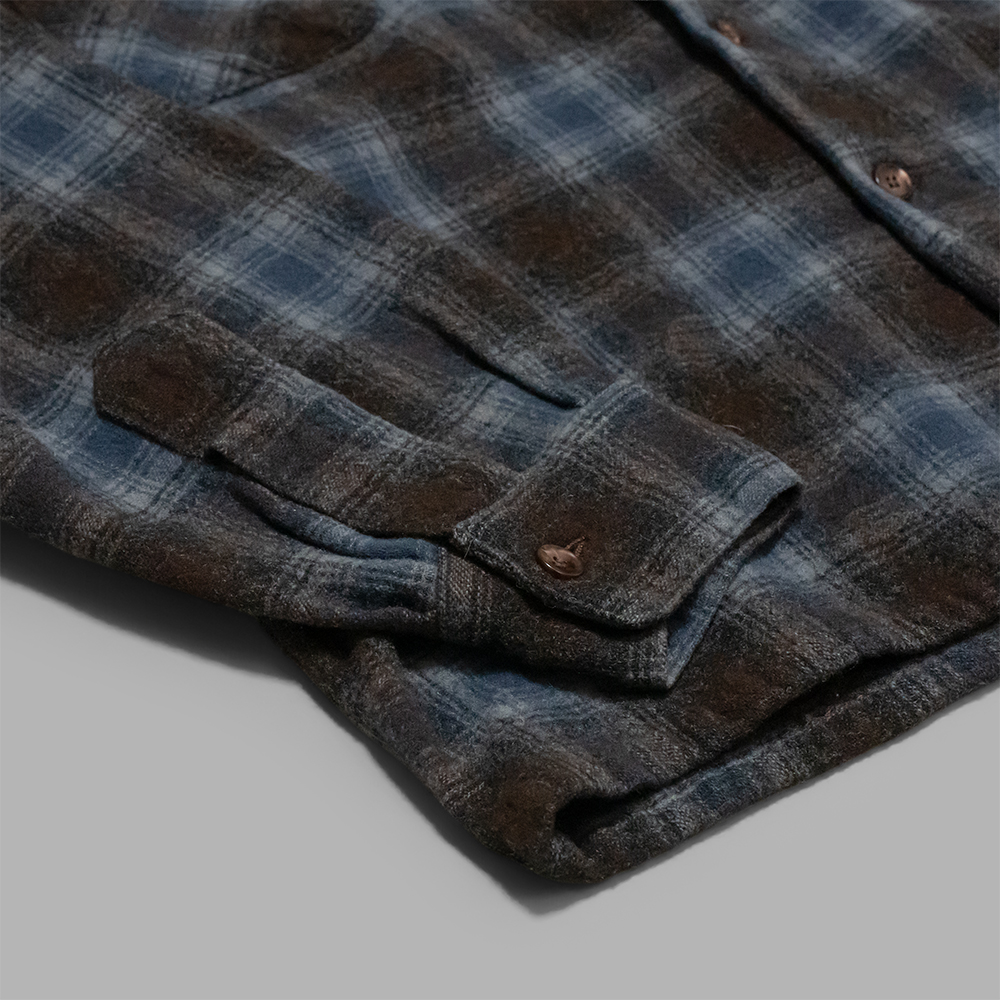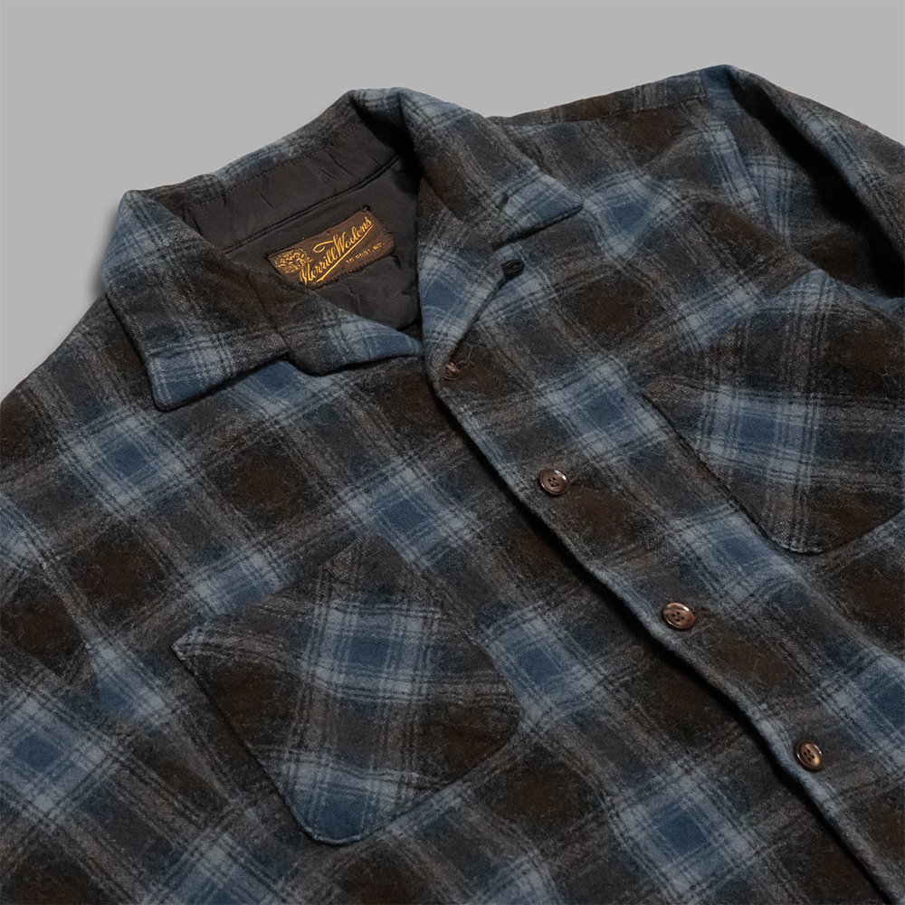 同ブランドはアメリカのウィスコンシン州を拠点としていた毛織物メーカーからの1着です。落ち着いたダークトーンで形成された配色が施されており、素材表記はございませんが、保温性に長けているウール素材が使用されているかと思われます。洗いのかかった個体により、しっかりと目の詰まりもあり、縮絨のような素材感になっているのも魅力の1つです。また、比較的、軽量で肌触りも良いのも特徴です。