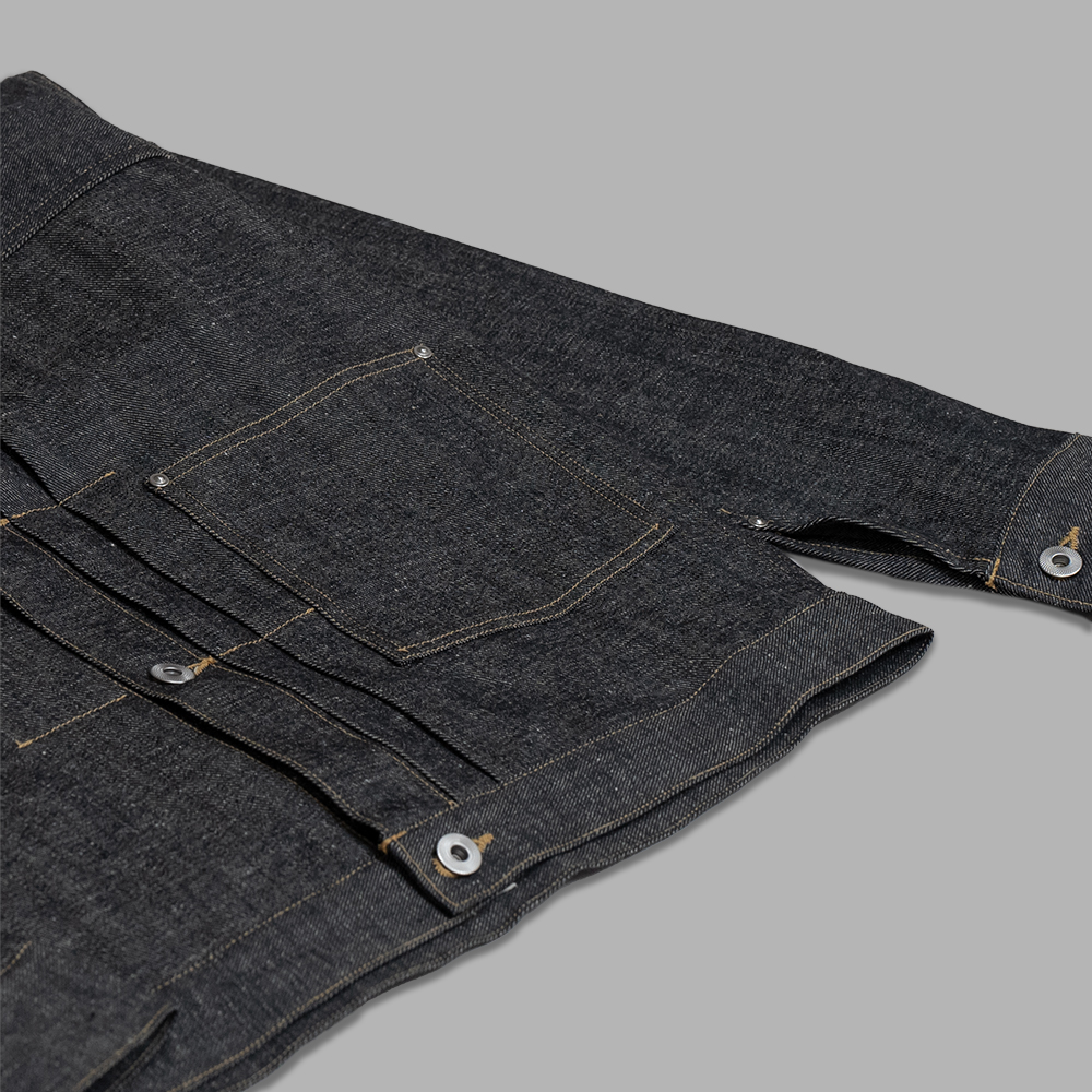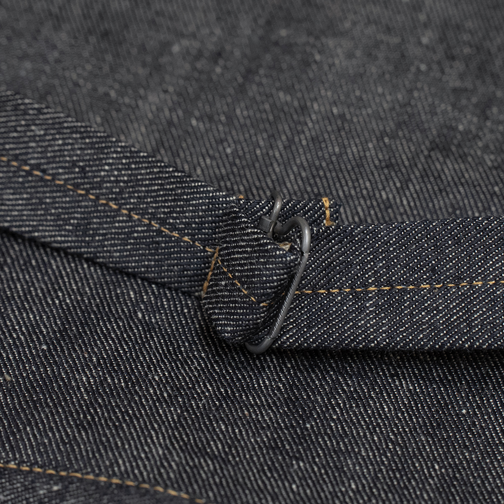 仕上げには、サンフォライズドと呼ばれる防縮加工を施しています。「白耳」のセルヴィッジデニム生地になっており、前身返しやカフス裏など各所に耳部分を使用しています。