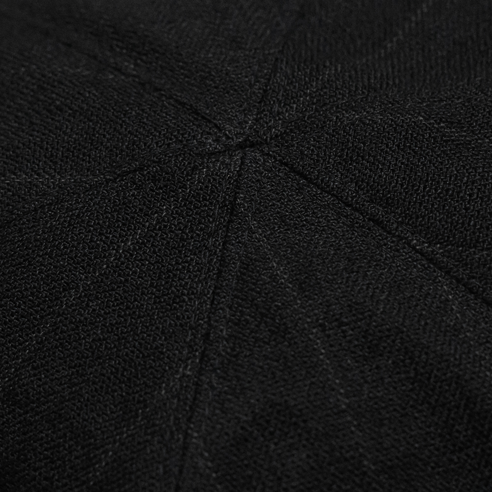 型は立体的なパターンによるフィッシャーマンキャップです。ライニングにはキュプラ素材を使用しながら、手洗い可能な仕様にしています。