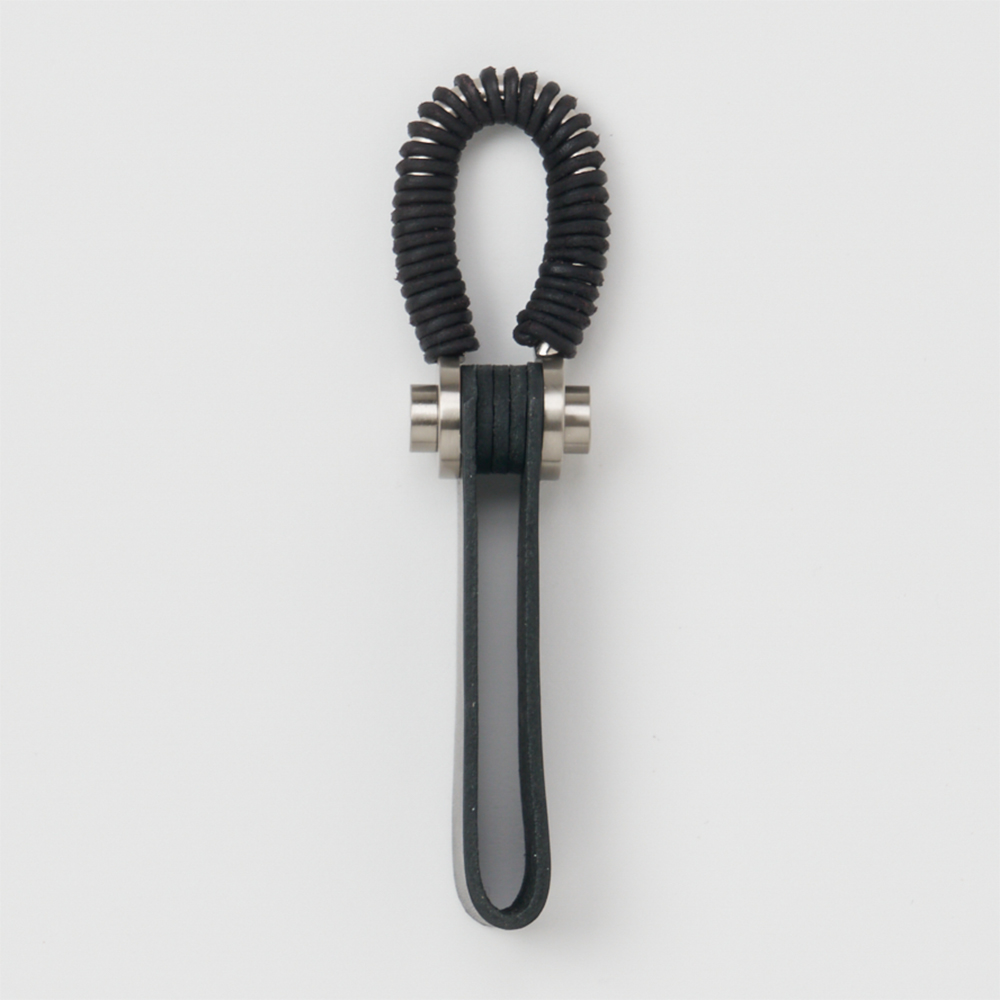 シンプルなデザインながらも、シャックル(U字型金具)部分に革の紐を巻き付けることで、同ブランドらしい高級感のあるアイテムに昇華されています。また、ベルトループは勿論のこと、バッグなどにも取り付けられる汎用性の高さも魅力の一つです。