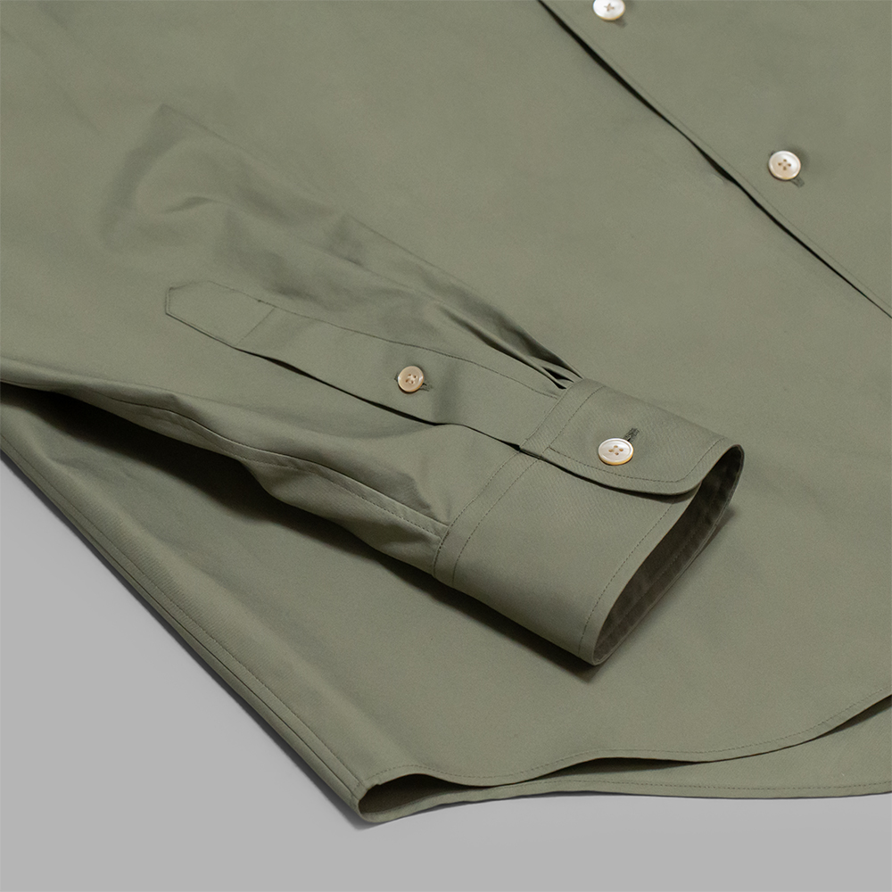 型は、シンプルなレギュラーカラーシャツをベースにしており、身幅やアームホールに程よくゆとりを持たせた、同ブランドらしい程よくリラックス感のあるサイズバランスで製作されています。襟部分は、カラーキーパーを採用しており、スタイリングに合わせて襟部分の雰囲気を変えて着用していただけます。