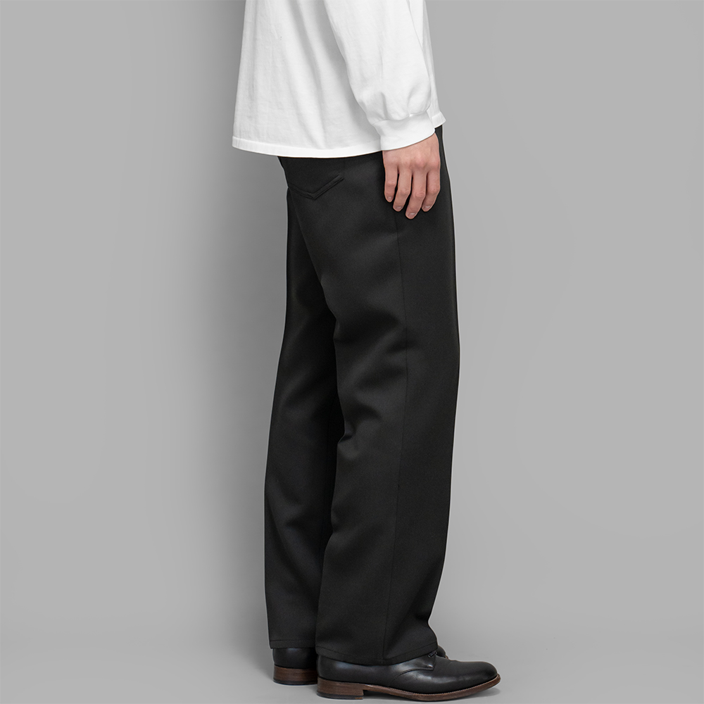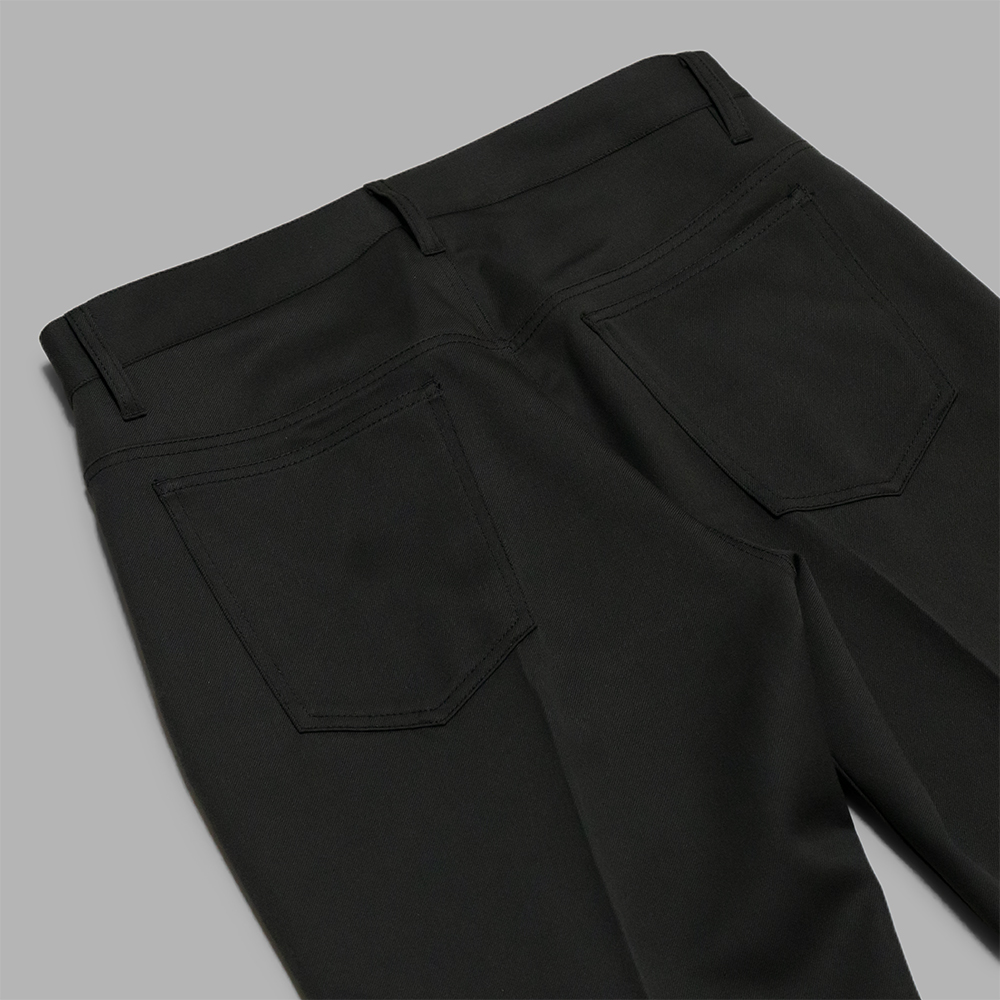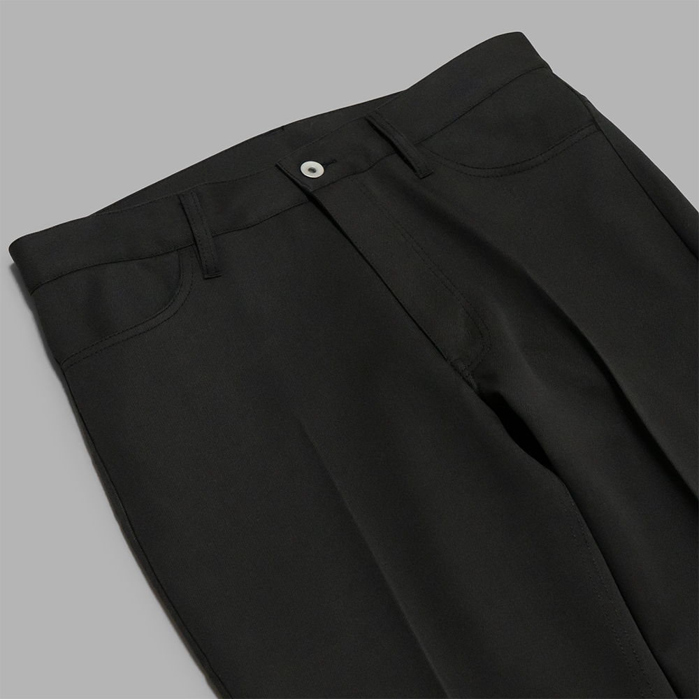 60年代に登場したボトムス、通称スタプレをリファレンスとしたモデルで、5ポケット型のディテールの仕様でありながら、センタープレスが入り、膝下ストレートの綺麗なシルエットが特徴的です。また、前立てはジップフライの仕様です。