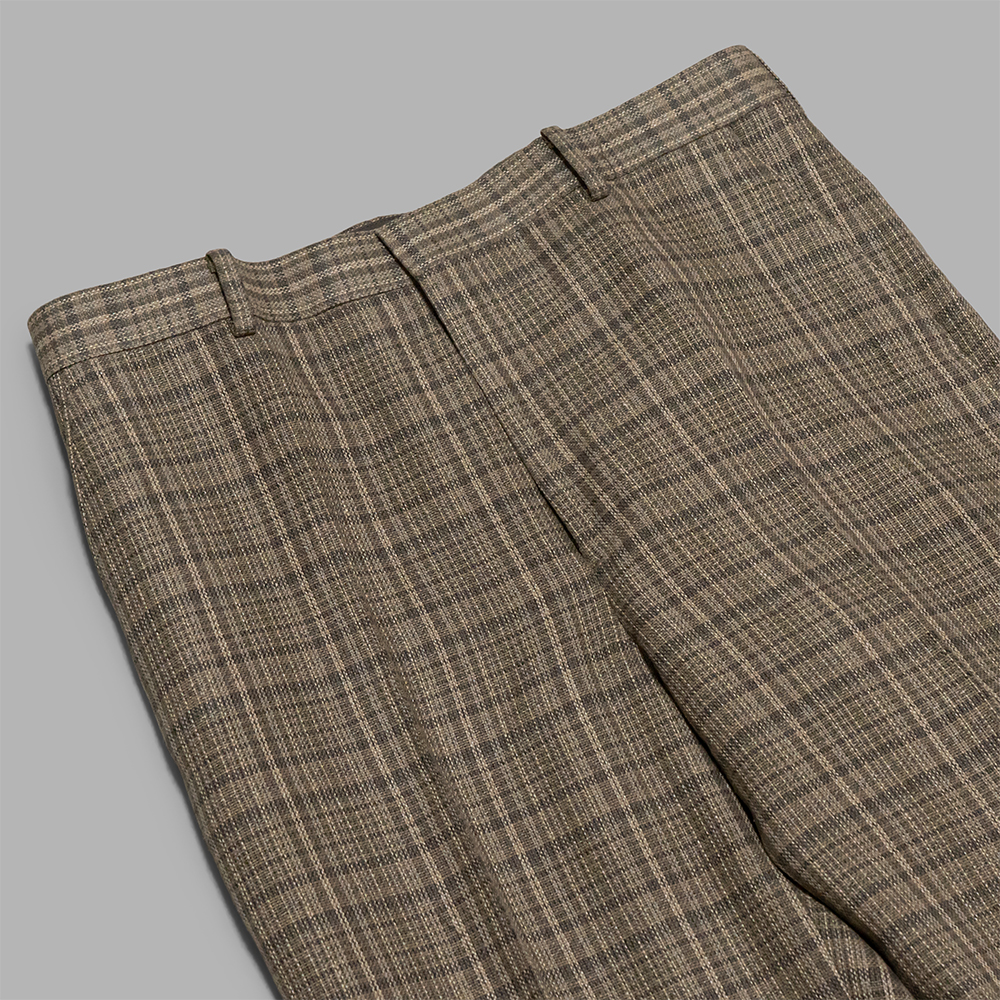 同ブランドらしさのある多色使いのチェックにより、生まれる奥行きのある色合いはこの素材ならではの魅力です。さらっとシャツを羽織るだけで上品さがうかがえ、春夏の暖かい時期でも快適に着用できるボトムスです。