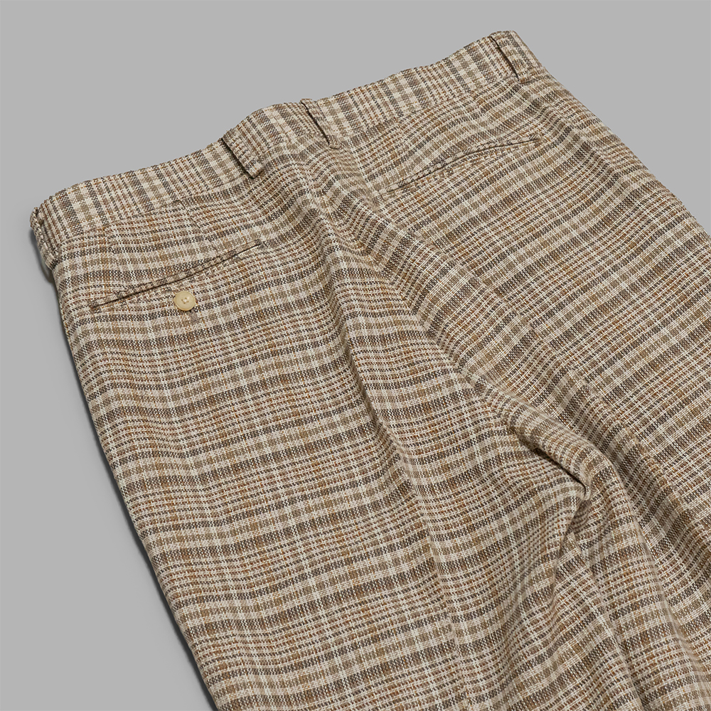 同ブランドらしさのある多色使いのチェックにより、生まれる奥行きのある色合いはこの素材ならではの魅力です。さらっとシャツを羽織るだけで上品さがうかがえ、春夏の暖かい時期でも快適に着用できるボトムスです。