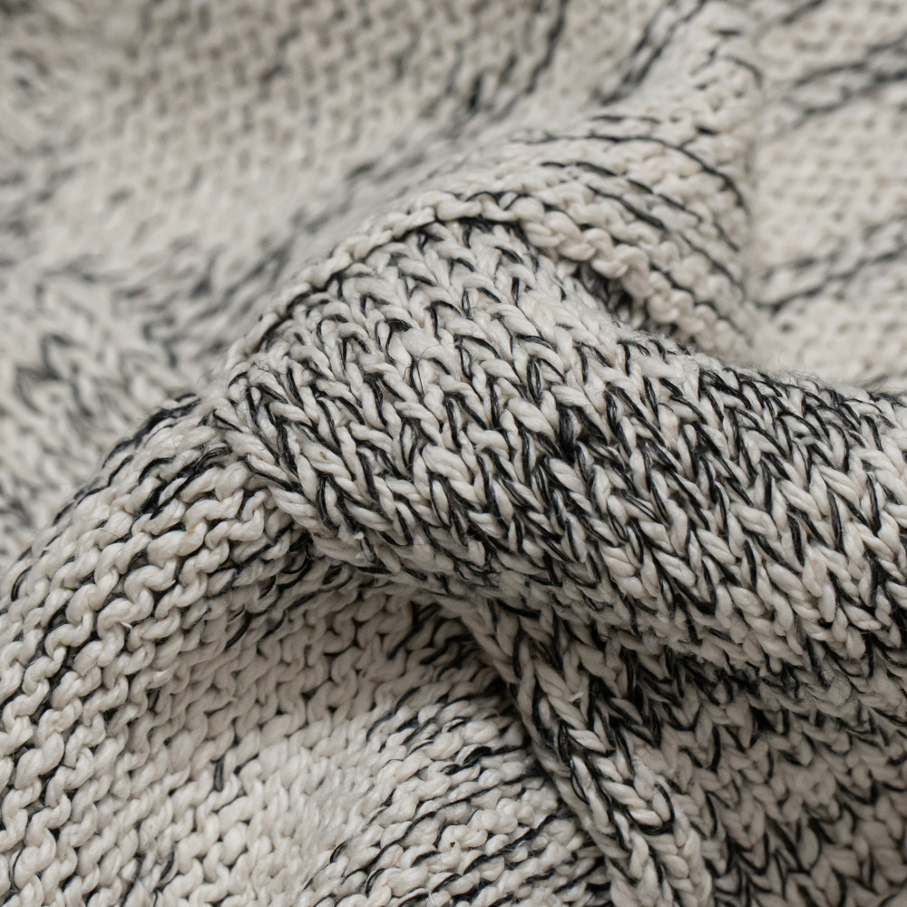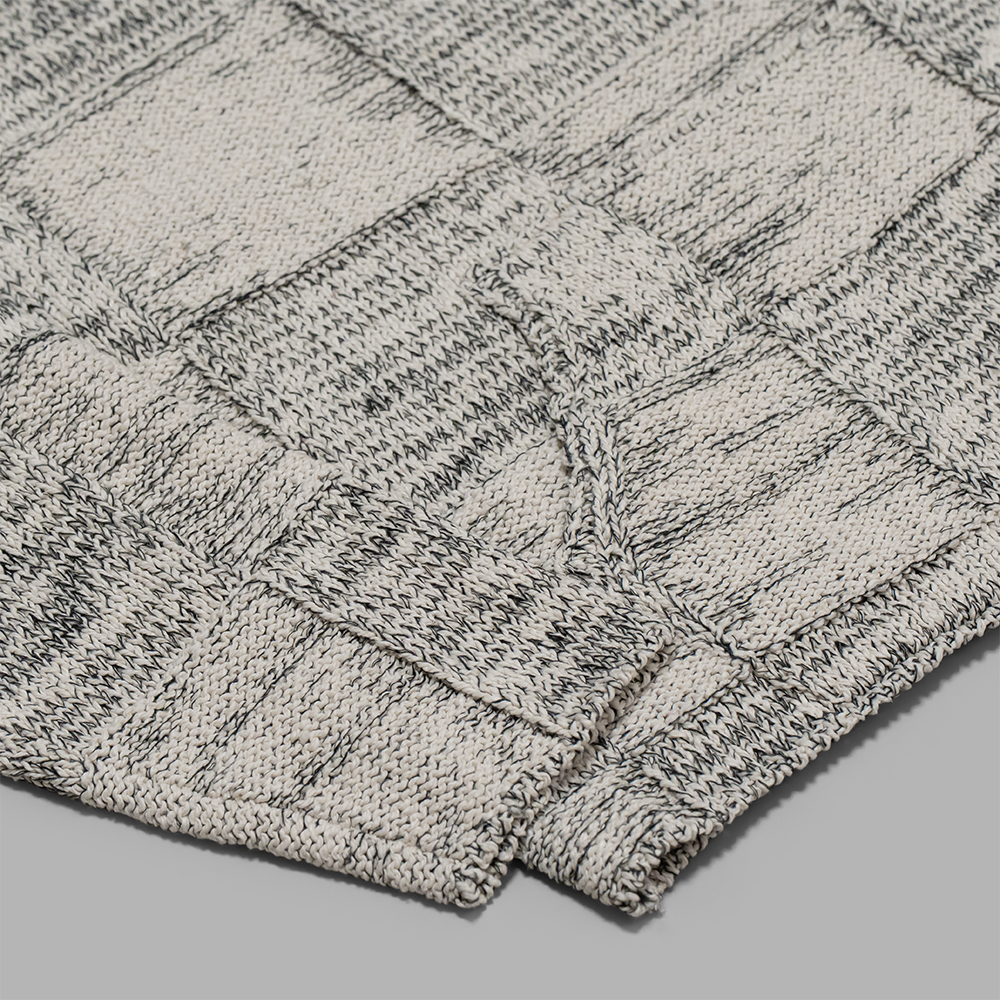 パネル状に切り替えた編み地が独特の迫力を演出してくれます。単体着用は勿論、コートやジャケットなどのインナーに重宝し、同アイテムのインナーにシャツを忍ばせるなど、レイヤードを楽しめる1着です。また、ベストとあわせるコーディネートもお勧めです。