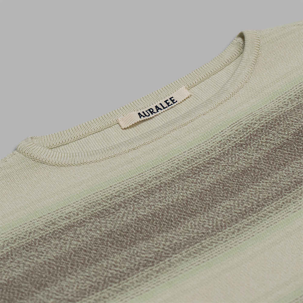AURALEE / Cotton Silk Gradient Stripe Knit Boat Neck P/O