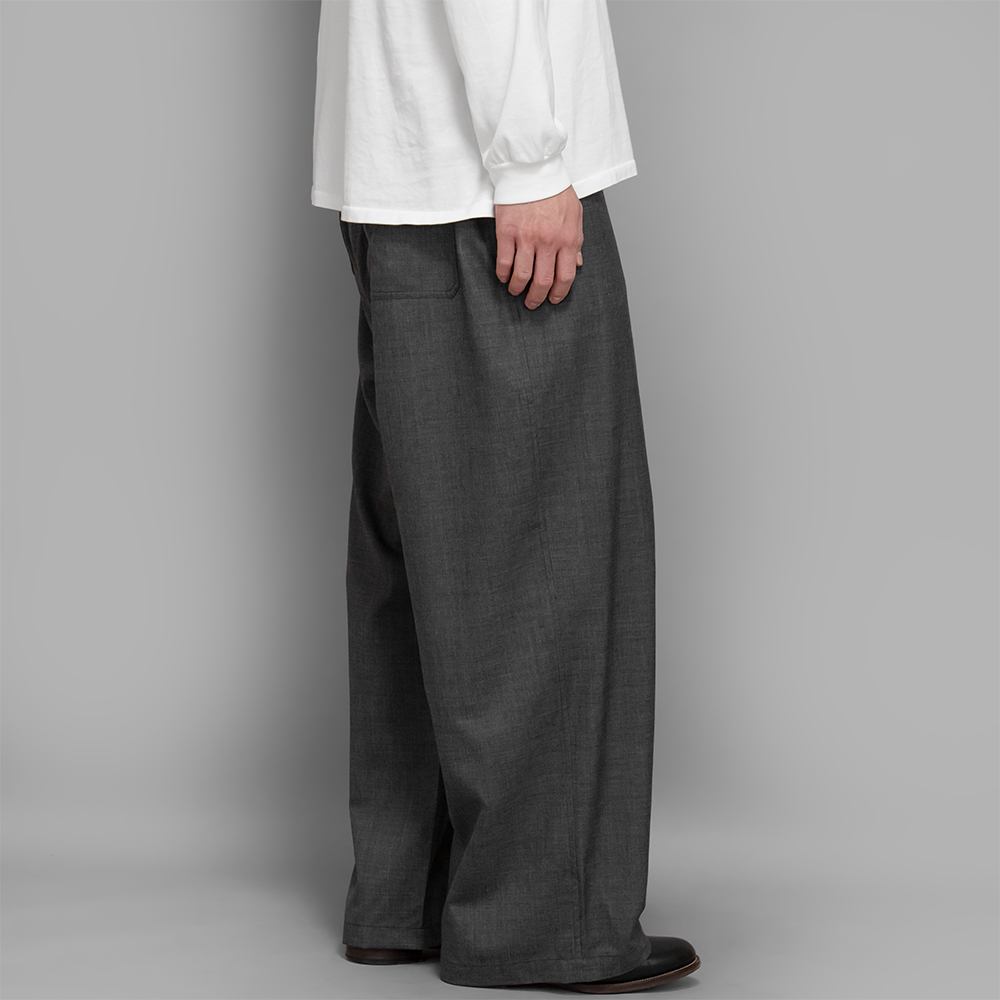 細番手の上質な糸を使用したウール素材を使用しています。夏場にも穿けるくらい肌触りが良く、シャリ感がある生地になります。また、非常に軽量で、加工によりシワになりにくい性質を持っていることも特徴の1つです。
