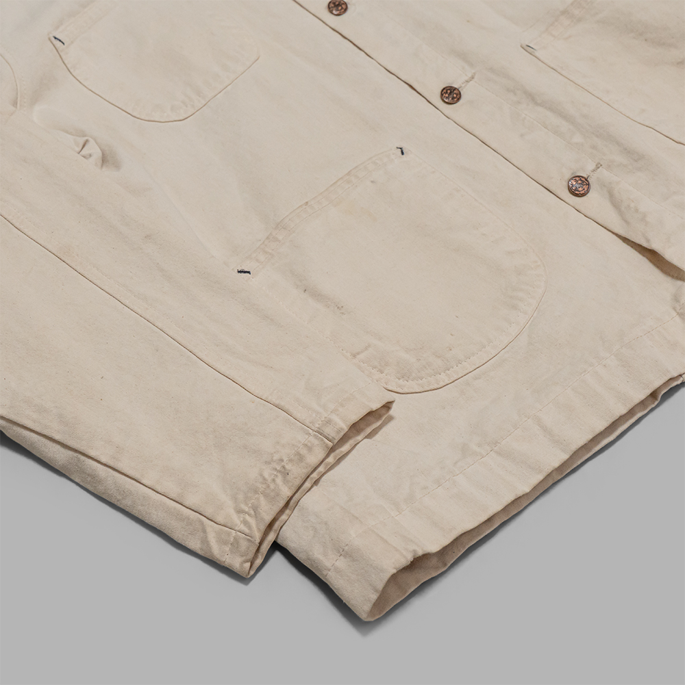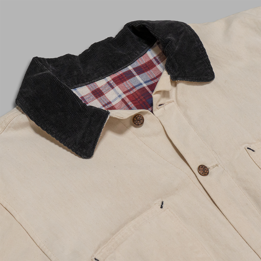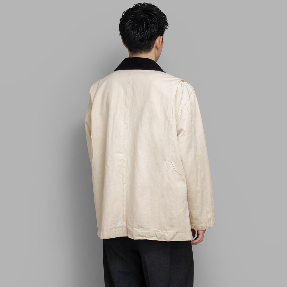 CABOOSEはアメリカを拠点とし、カジュアルライクなディテールを取り入れたワークウェアを中心に展開していました。生地にはアメリカらしいコットン素材を採用しながらも、温かみや柔らかい印象を感じさせてくれるアイボリーを基調とし、襟にはコーディロイを採用しています。