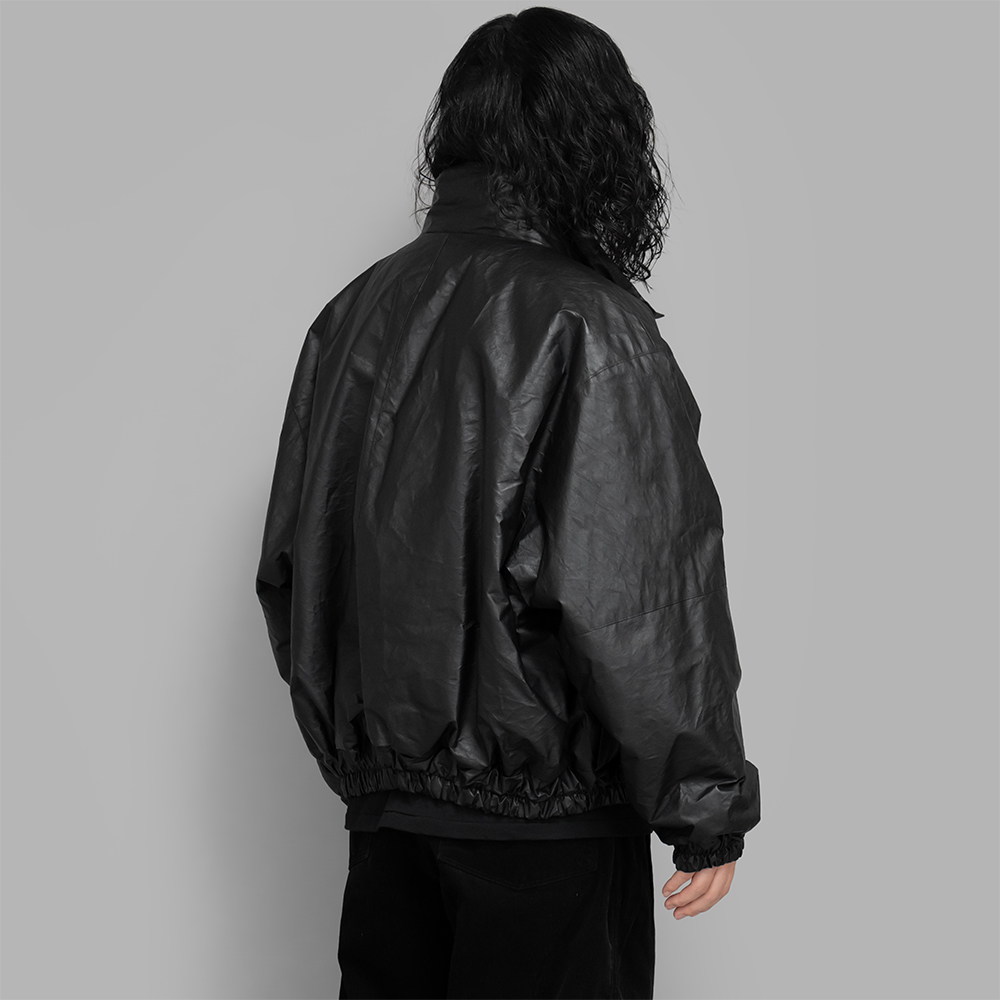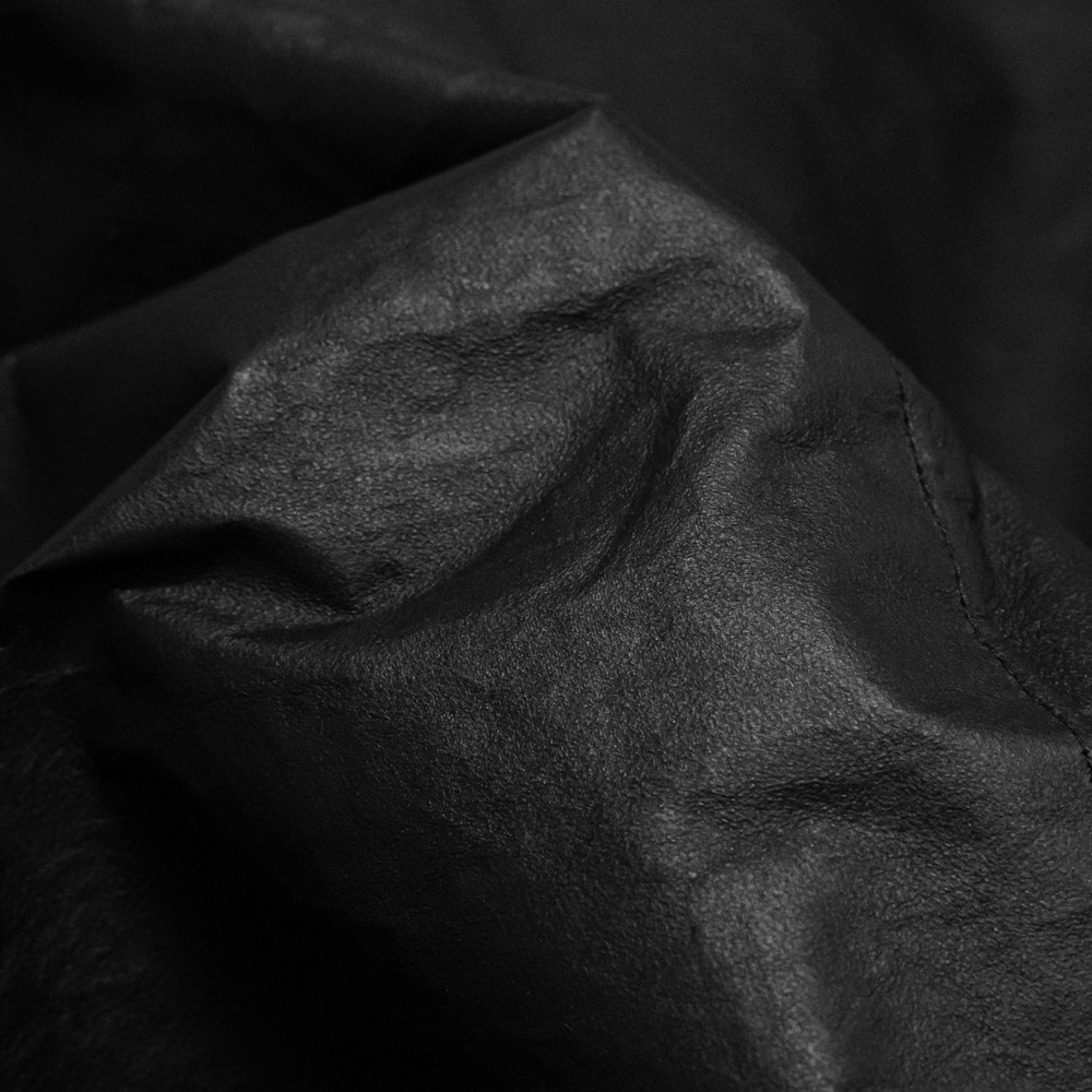 ペーパーのような特殊なレザーで作製したパデッドジャケットです。薄手ですが、しっかりしたハリがあり、独特な艶感もあるレザーになります。