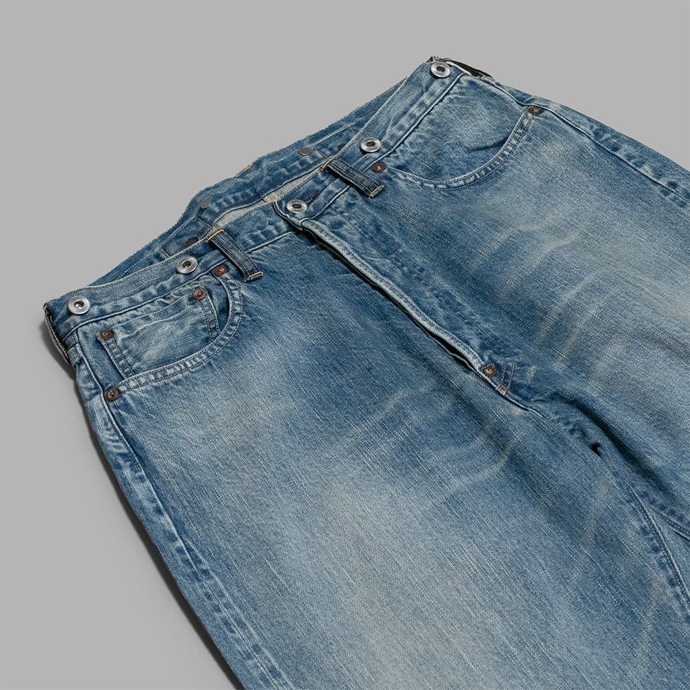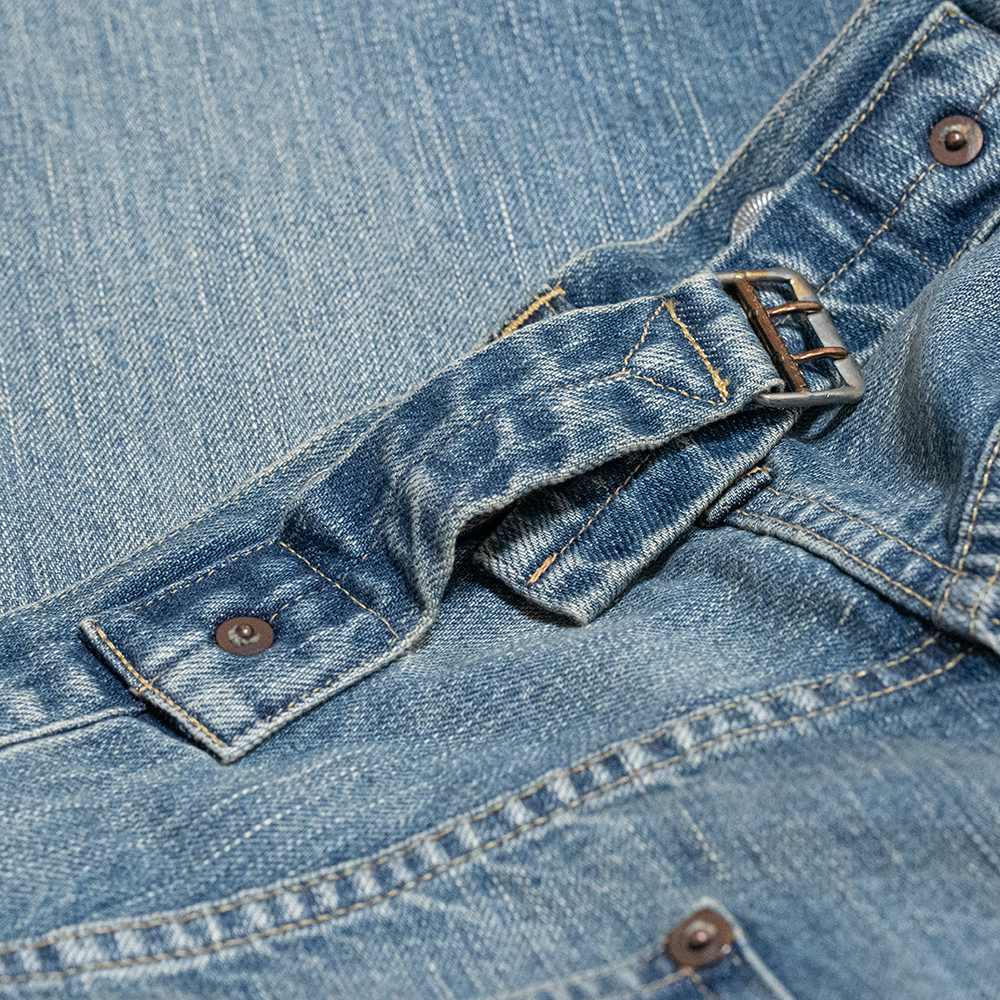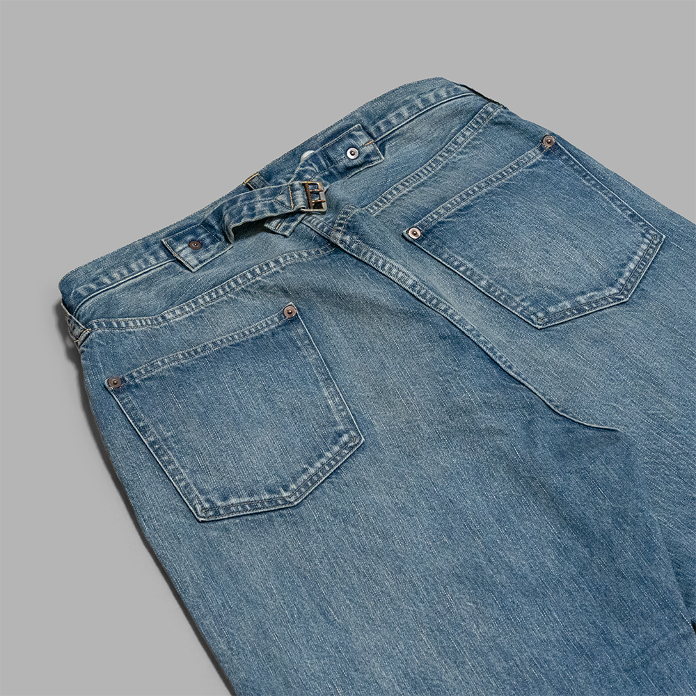加工はヴィンテージでは中々お目にかかれない、程よく濃さが残った、グッドコンディションのヴィンテージを忠実に再現しています。後年のモデルに比べると、ゆったりしたシルエットで作られているため、ワイドテーパードのチノやスラックスのような感覚で、スタイリングできます。アンティークレベルの古いモデルがベースではありますが、現代のファッションにも調和する1本と言えます。