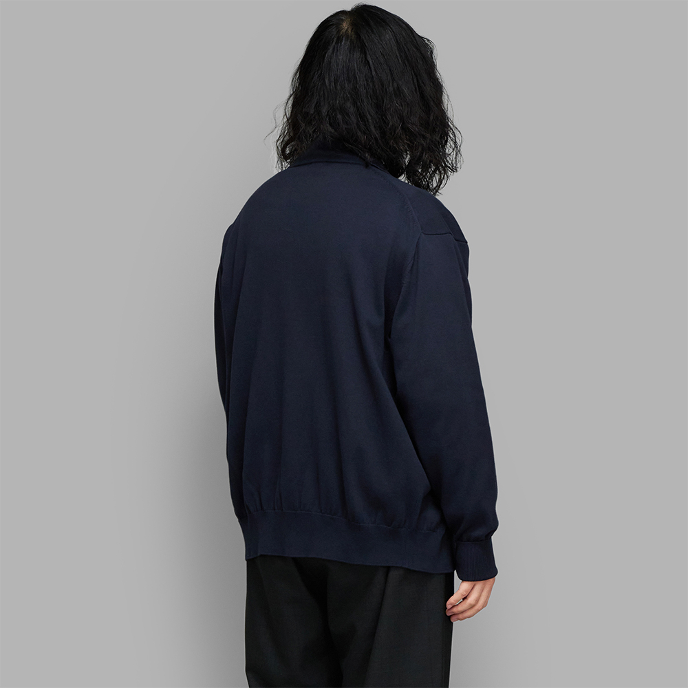 A.PRESSE / Cotton Knit Polo Collar Cardigan (Navy)