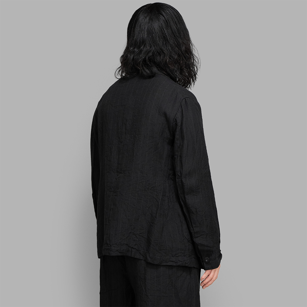 クラシカルな雰囲気を纏ったアイテムですが、製品加工を加えることで、リネン特有の柔らかな風合いを兼ね備えたアイテムに仕上がっており、シャツジャケット感覚で羽織りやすいのも特徴の一つです。同素材のボトムスも展開されており、セットアップでのコーディネートもお勧めです。
